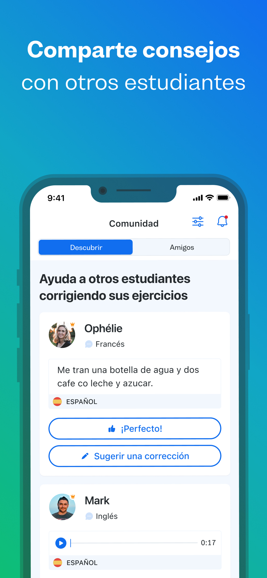 – Hablar con fluidez gracias a las correcciones de hablantes nativos