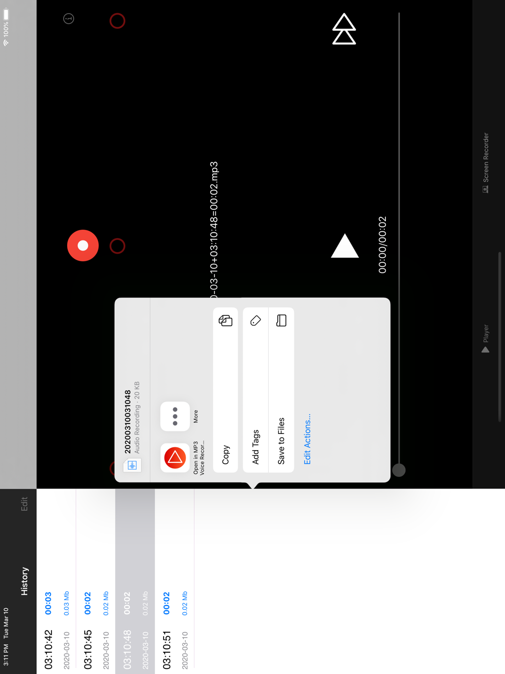 Esta aplicación tiene una característica muy buena. puede grabar la pantalla de su dispositivo, mientras que es opcional agregar que el sonido del micrófono se sincronice con el video o no. Le permite crear videos Mp4 de gran calidad desde la pantalla y luego, automáticamente, se guardará en el carrete de la cámara.