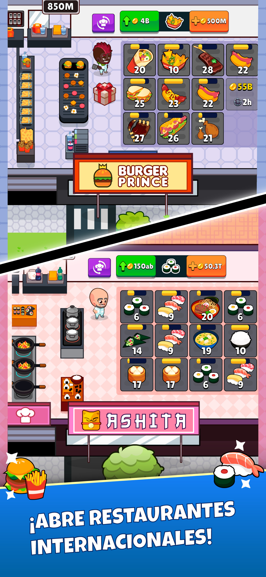 Construye tu imperio de comida rápida y conviértete en un tycoon.