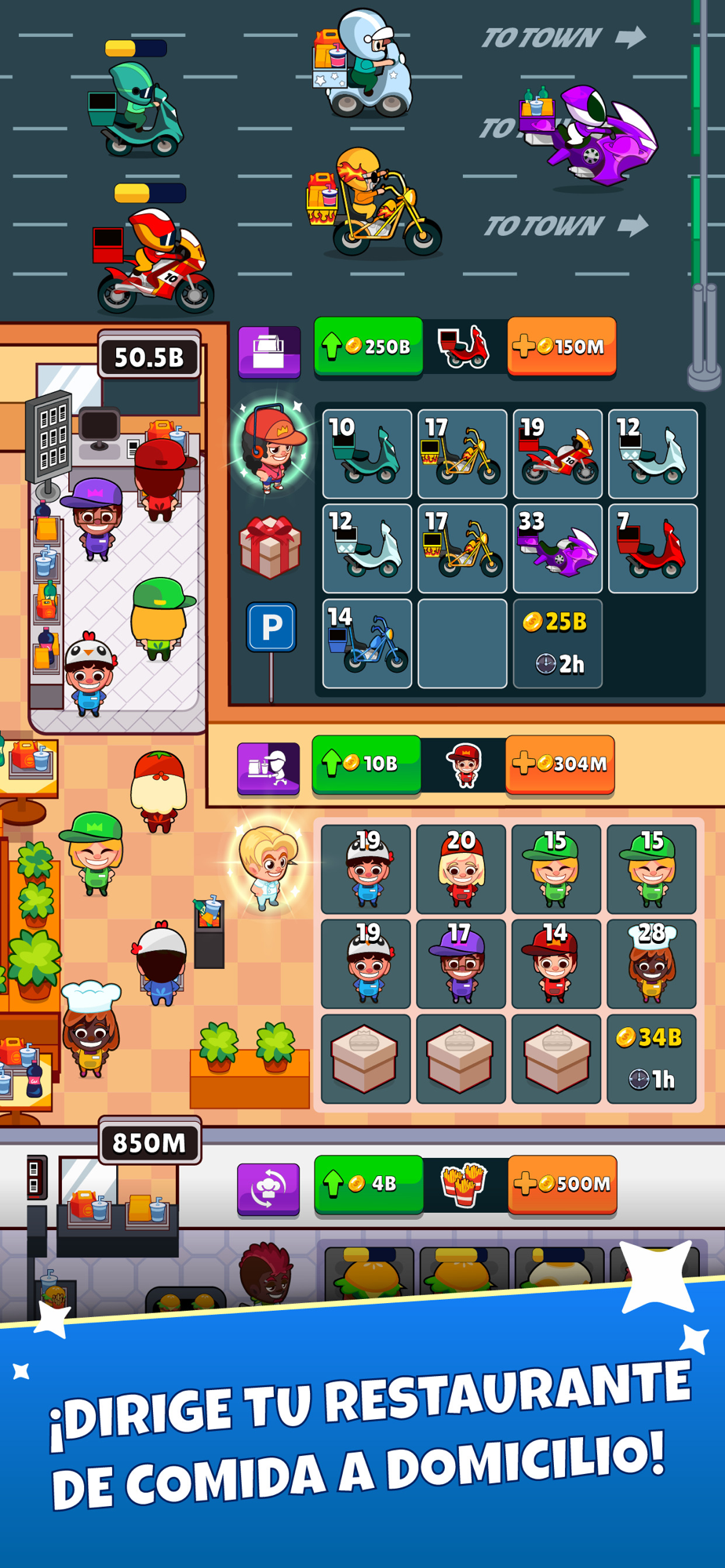 ¡Este juego de simulador de delivery es único! Haz merge para maximizar tu negocio de comida rápida delivery, gana más dinero e invierte en las diferentes estaciones de tu restaurante para convertirte en un millonario ¡Sube de nivel! mejora tu restaurante y abre nuevas franquicias con nuevas recetas, fácil y sencillo. Esto no es un clásico juego de clicker, es una nueva aventura de idle tycoon, un original simulador de restaurante delivery.