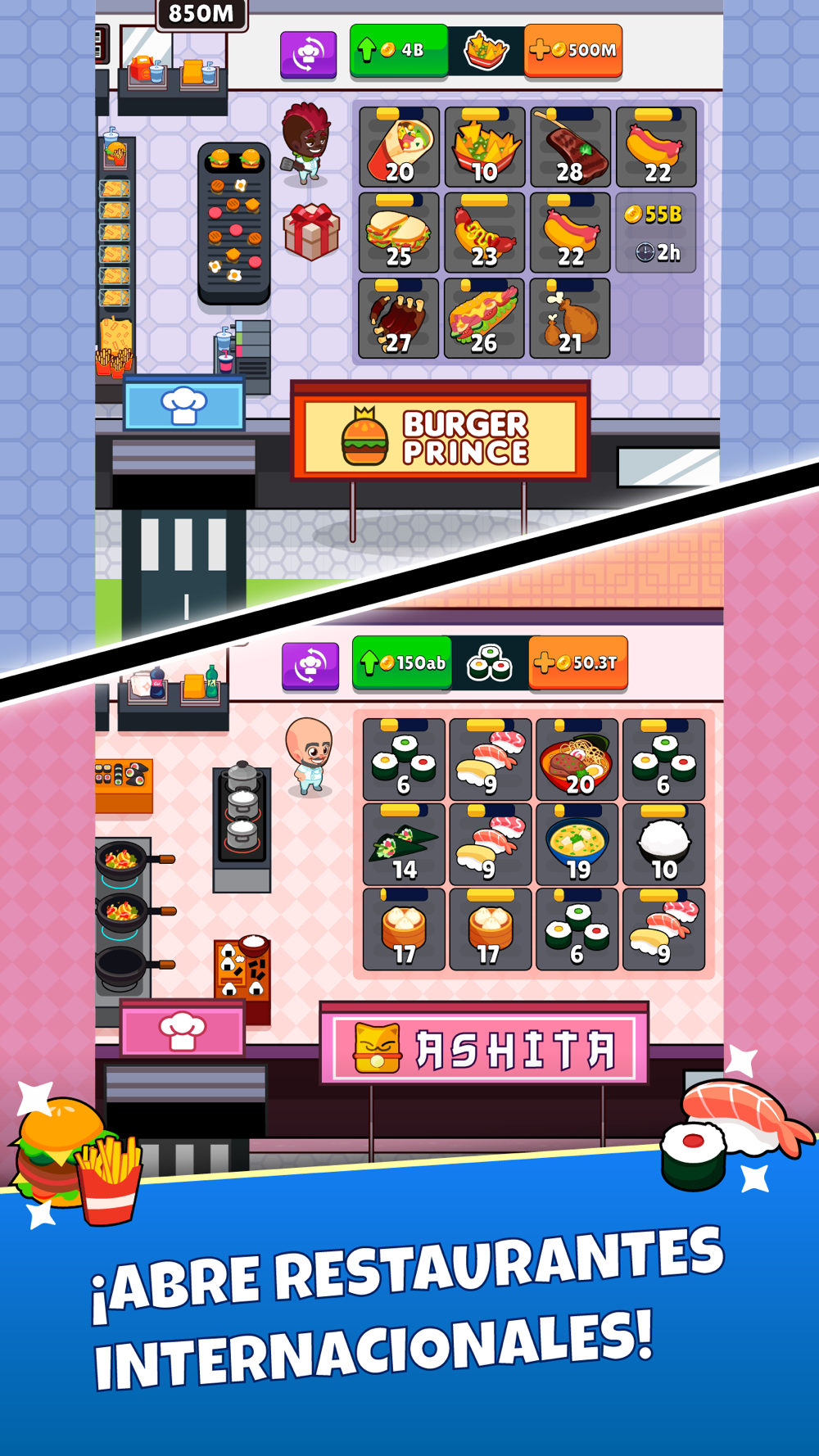 - Mejora tu restaurante para convertirte en un tycoon millonario en este juego idle.