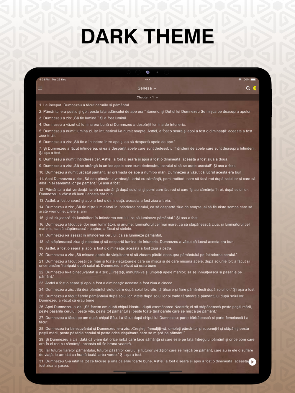 Holy Romanian Orthodox Bible is a Romanian language translation to understand God’s word easily. Read this Orthodox Study Bible anytime and anywhere to enlighten your mind. This Romanian Holy Bible app gives you an improved Bible experience by keeping a mark on your readings, having instant access to any chapter, adding customized bookmarks, and much more.