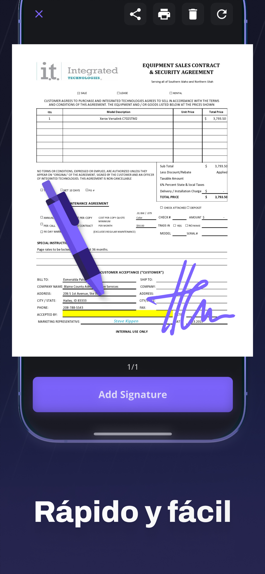 5. Guardar y Compartir: Guarda documentos firmados o compártelos instantáneamente por correo electrónico o almacenamiento en la nube.