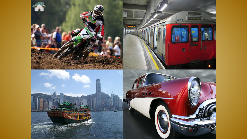 5. TRANSPORTE: coche, autobús, motocicleta, barco, etc.