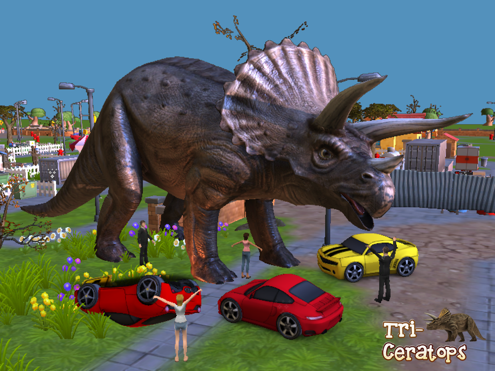 You will feel super powerful when you control this Triceratops as he rampages and smashes everything in his path. When you think of the Jurassic period, the Triceratops is one dino that comes to mind. The game is loaded with 6 action packed maps with loads of interactive objects. Enjoy both city, park, and farm settings with horses, hay, and fences to smash.This dinosaur simulator is equal parts entertainment and interaction.