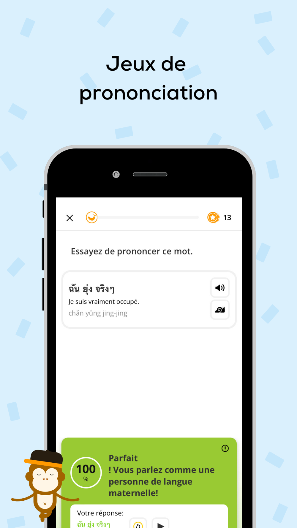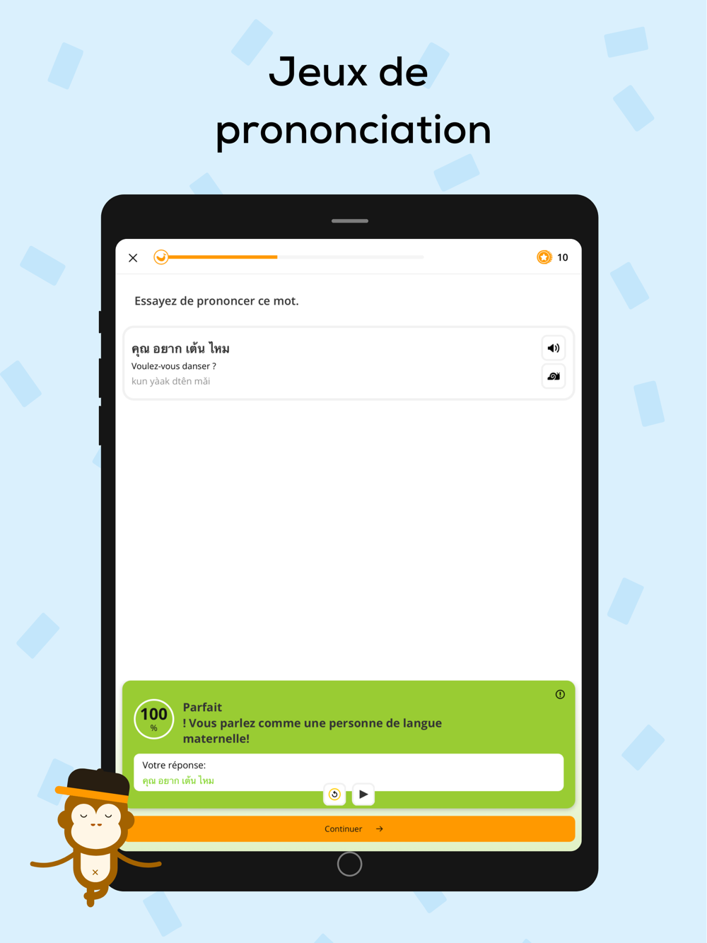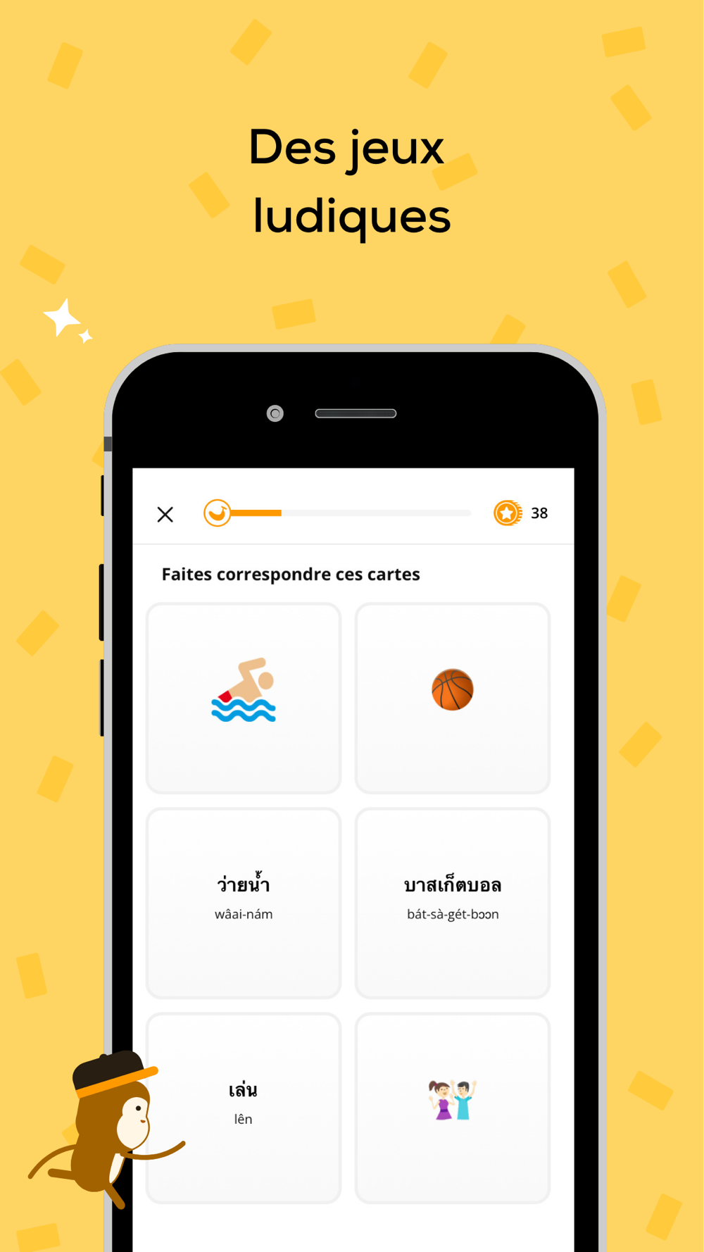 Sois malin comme un singe et rejoint la communauté d'étudiants qui utilisent Ling pour apprendre le Thai!