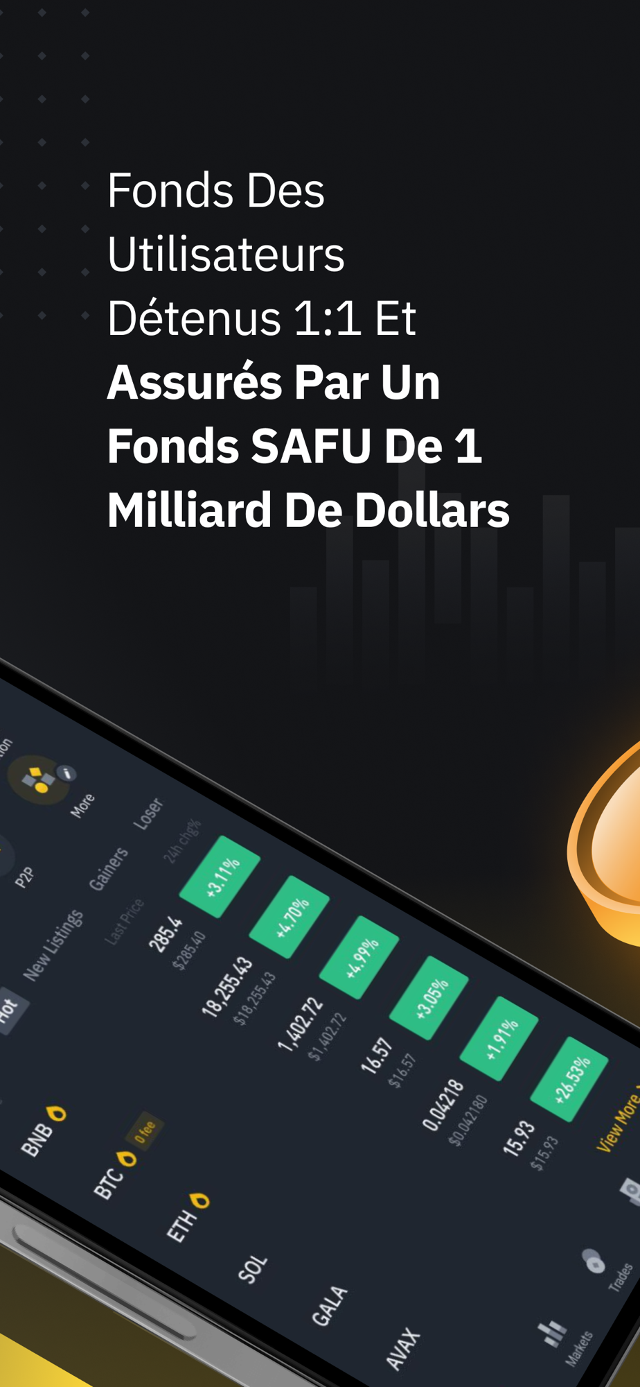 L'application de trading Binance vous permet d'investir facilement dans des cryptomonnaies telles que le Bitcoin, le Bitcoin Cash, l'Ethereum et de nombreuses cryptomonnaies, avec de nombreuses possibilités de trading ou d'échange en différents altcoins.
