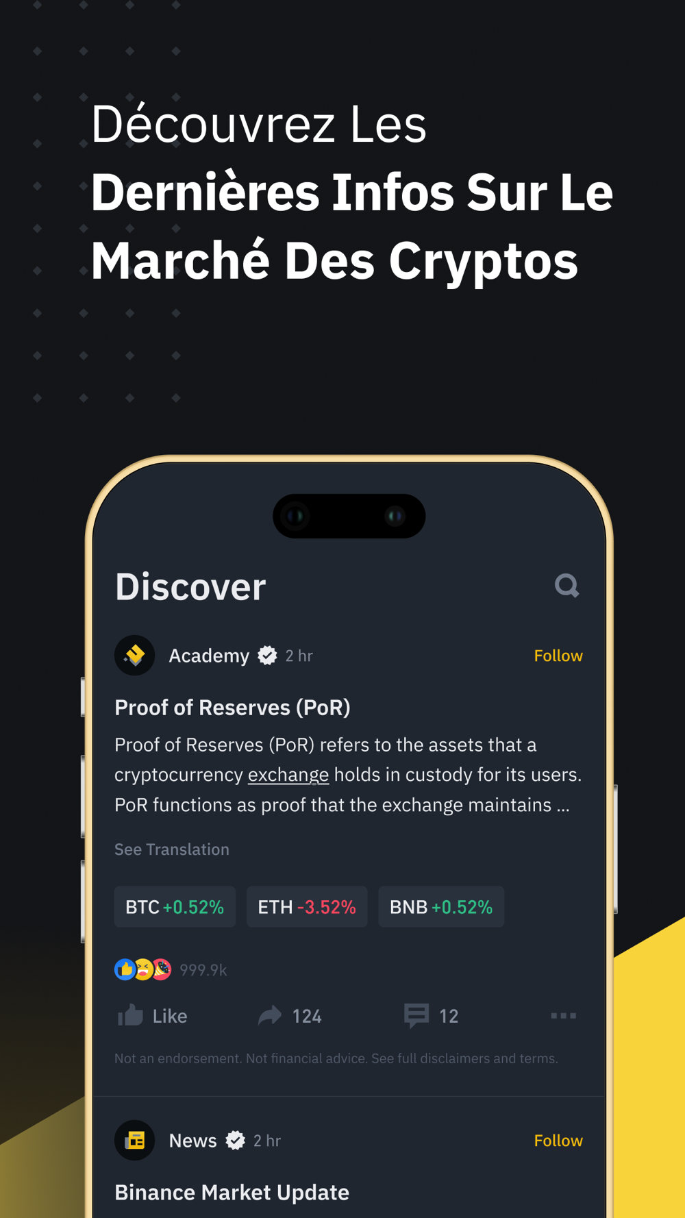 Nous souhaitons être la meilleure application sur les cryptomonnaies pour nos utilisateurs et nous avons besoin de vos suggestions afin d'améliorer notre application sur les cryptomonnaies ! Vous pouvez contacter l'équipe à l'adresse mail : product@binance.com et nous serons heureux d'échanger avec vous !