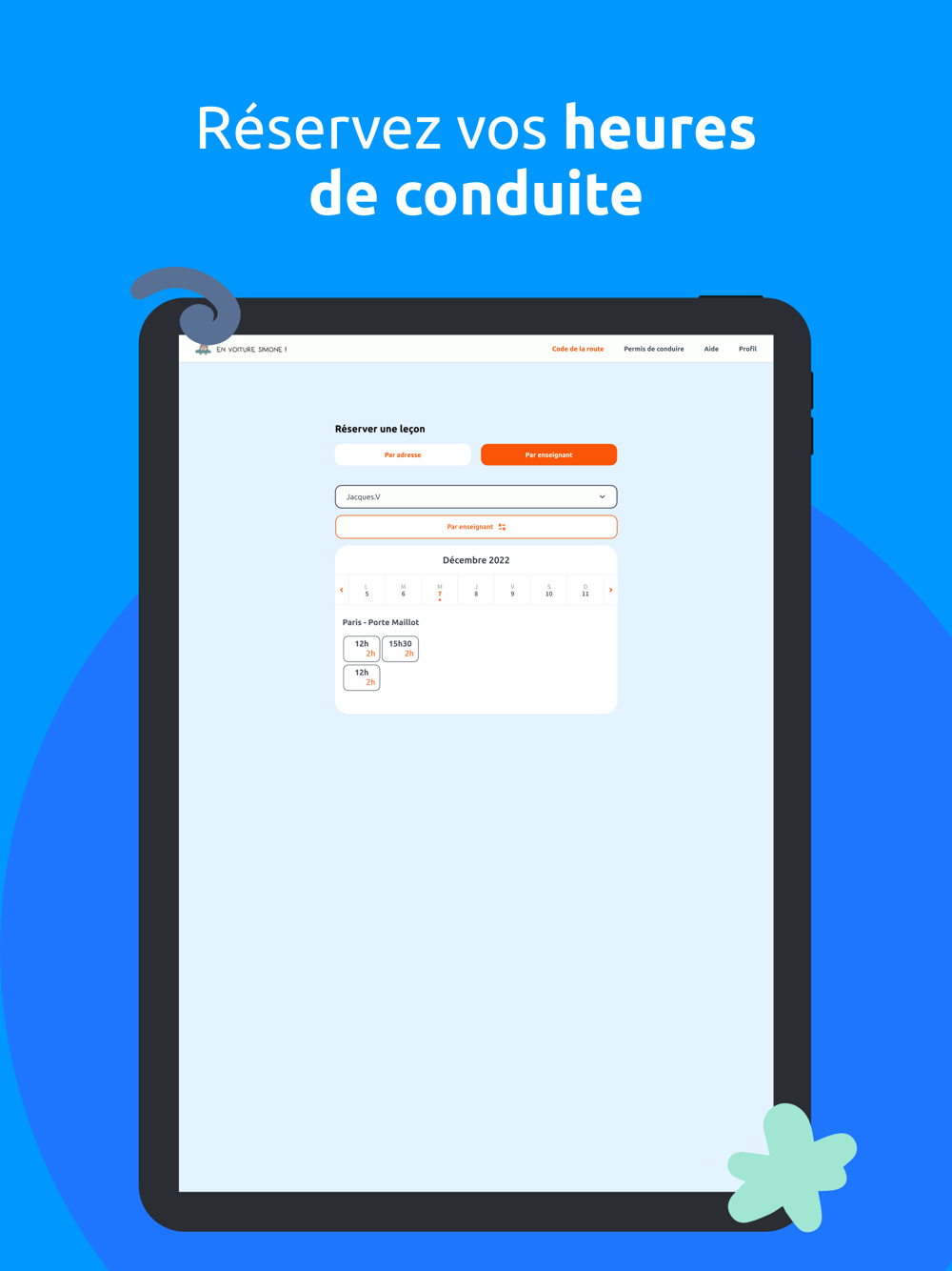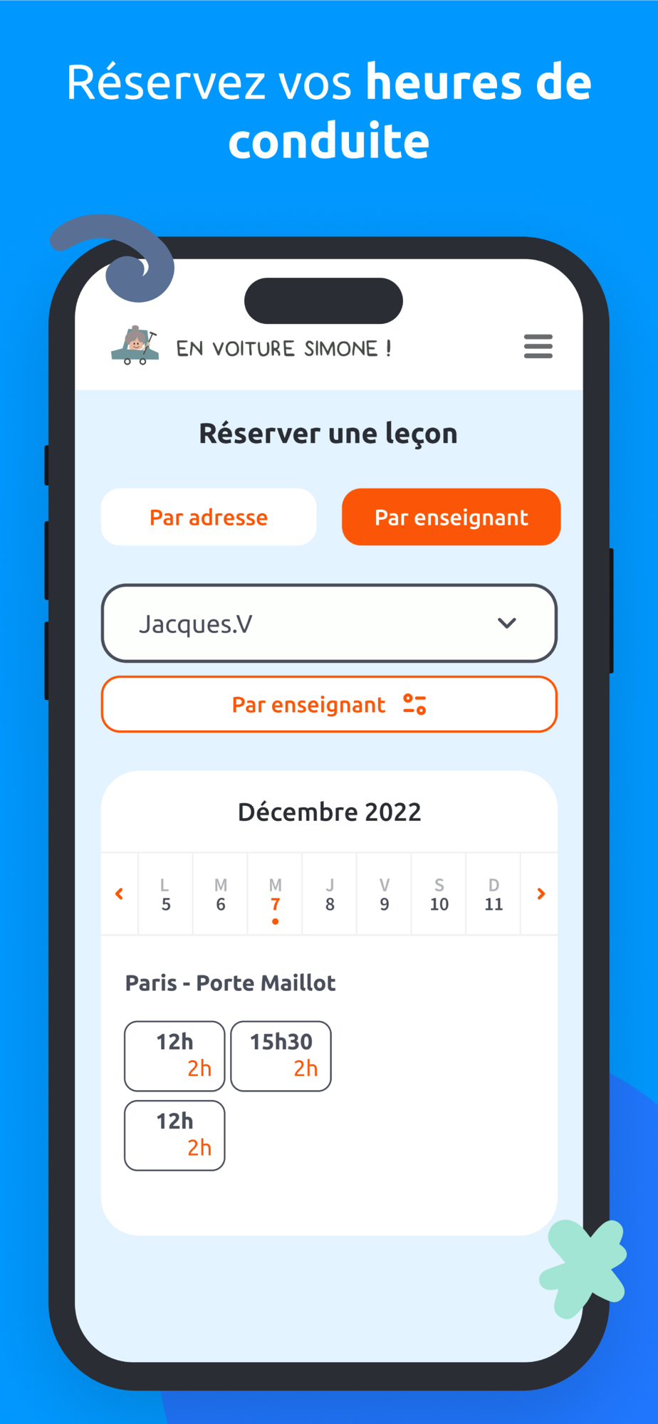 • Gérez vos heures de conduite. et réservez vos leçons entre 7h et 23h 7/7