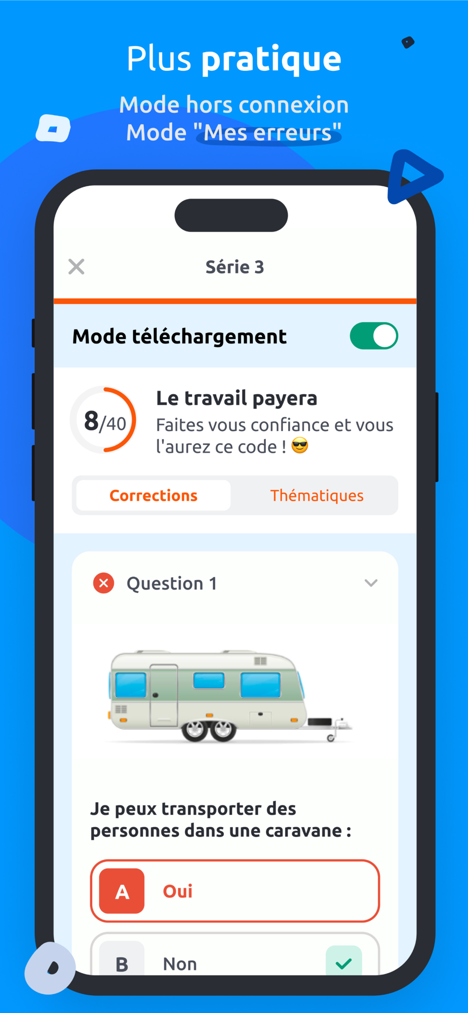 • Mode "mes erreurs" pour progresser et obtenir rapidement votre code de la route