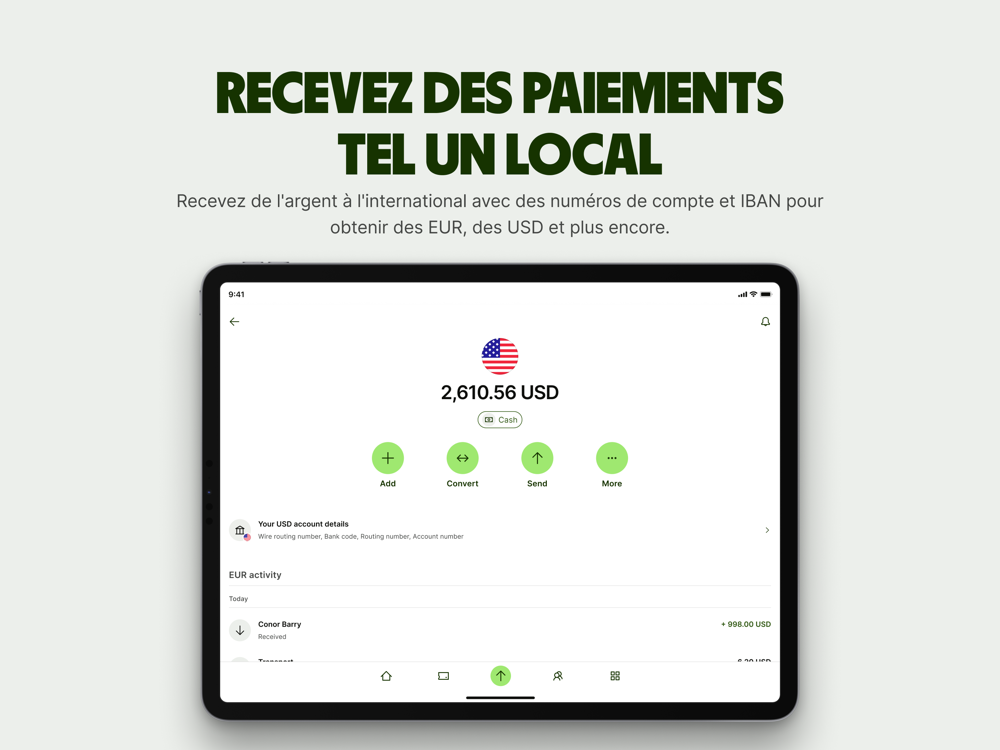 • Utilisez ces numéros de compte pour recevoir de l'argent gratuitement dans plusieurs devises et pour mettre en place des prélèvements bancaires