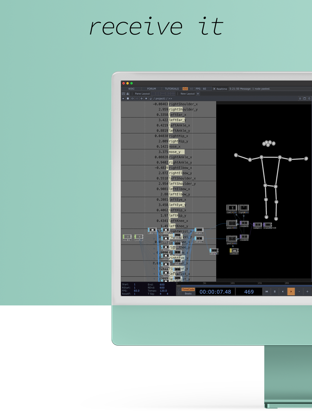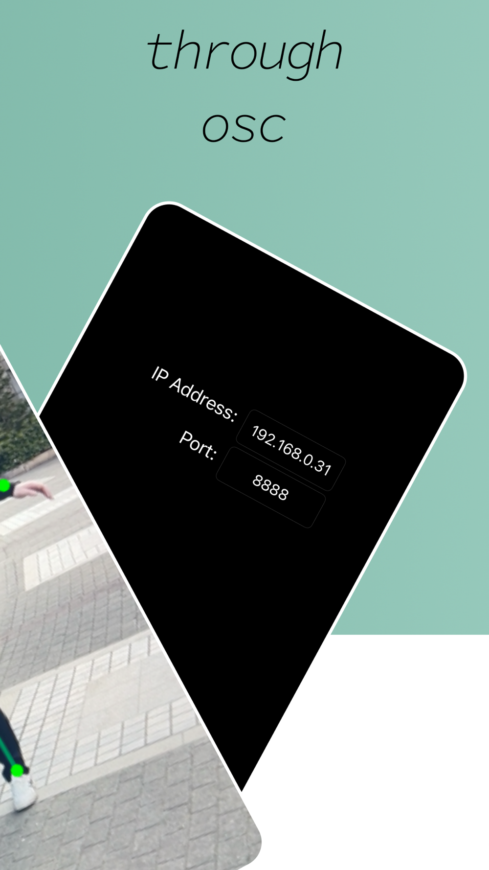 An application capturing body tracking data and sending it to other devices using OSC, a protocol for networking sound synthesizers, computers, and other multimedia devices, to create multimedia content.