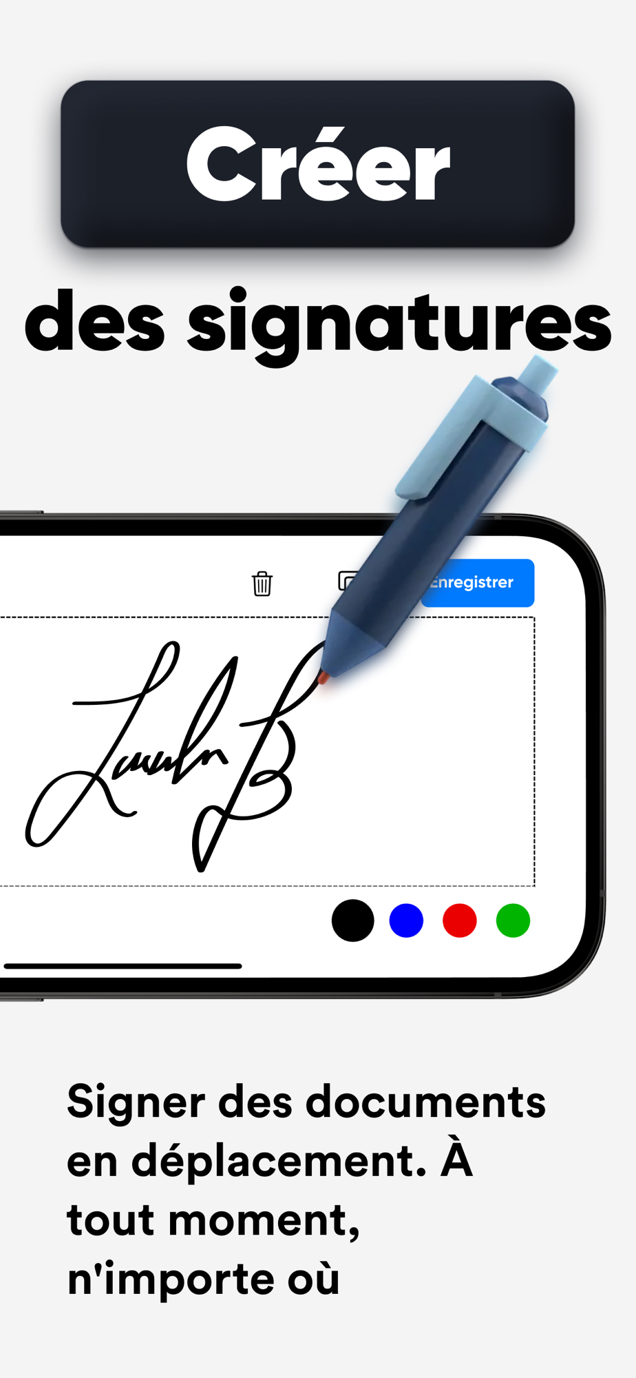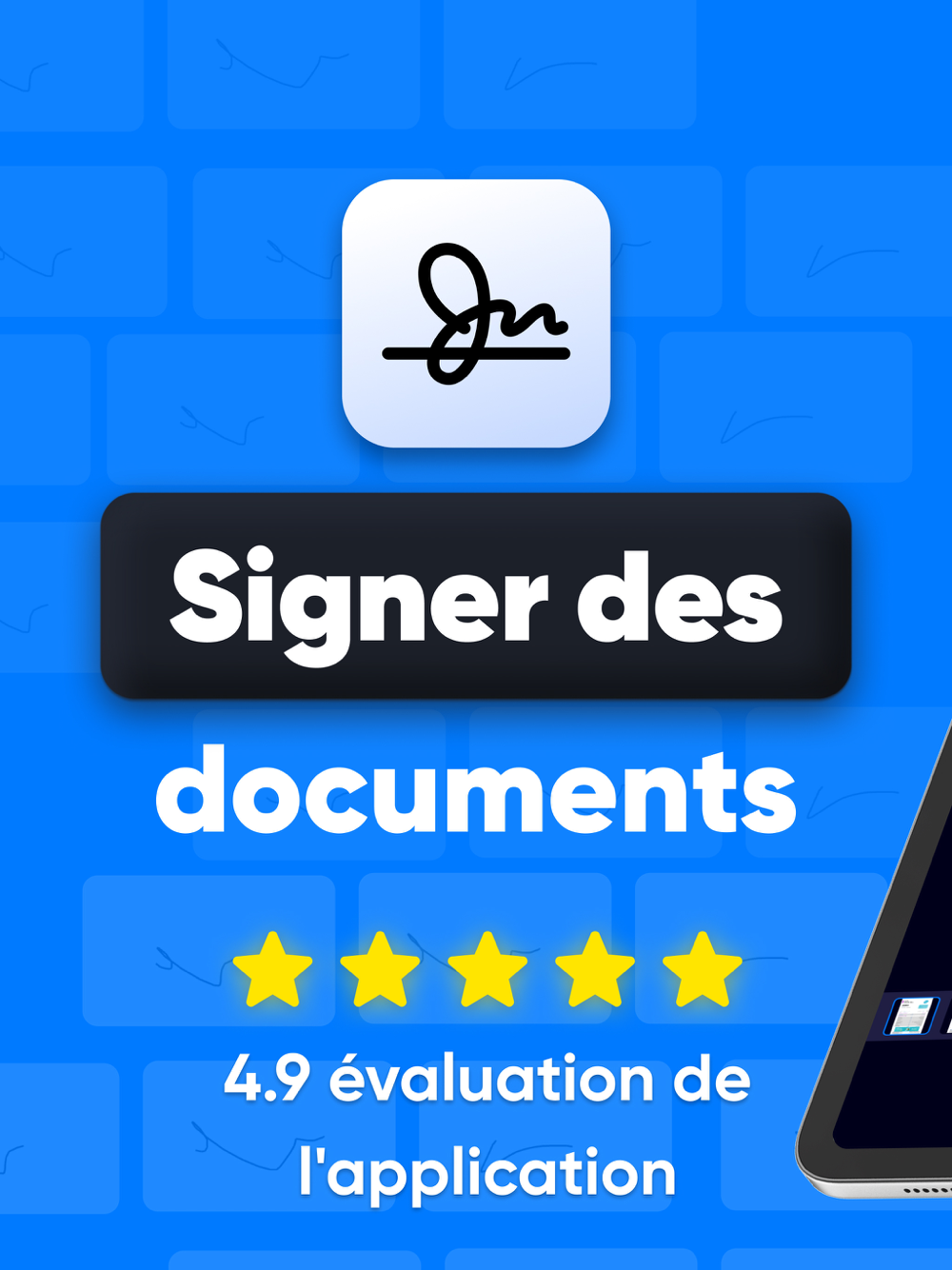 La signature électronique est la manière confortable pour les entreprises et les particuliers d'envoyer et de signer des documents de manière sécurisée, de n'importe où et à tout moment, depuis vos iPhones et iPads. L'application de signature électronique est facile à utiliser. Importez rapidement, ajoutez une signature et partagez n'importe quel document au format PDF ou JPG.