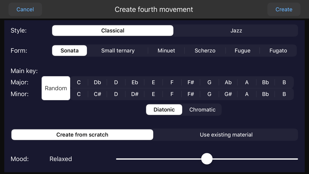 Aimée will then harmonize these melodies in a classical or jazz style taking into account the instruments you selected.