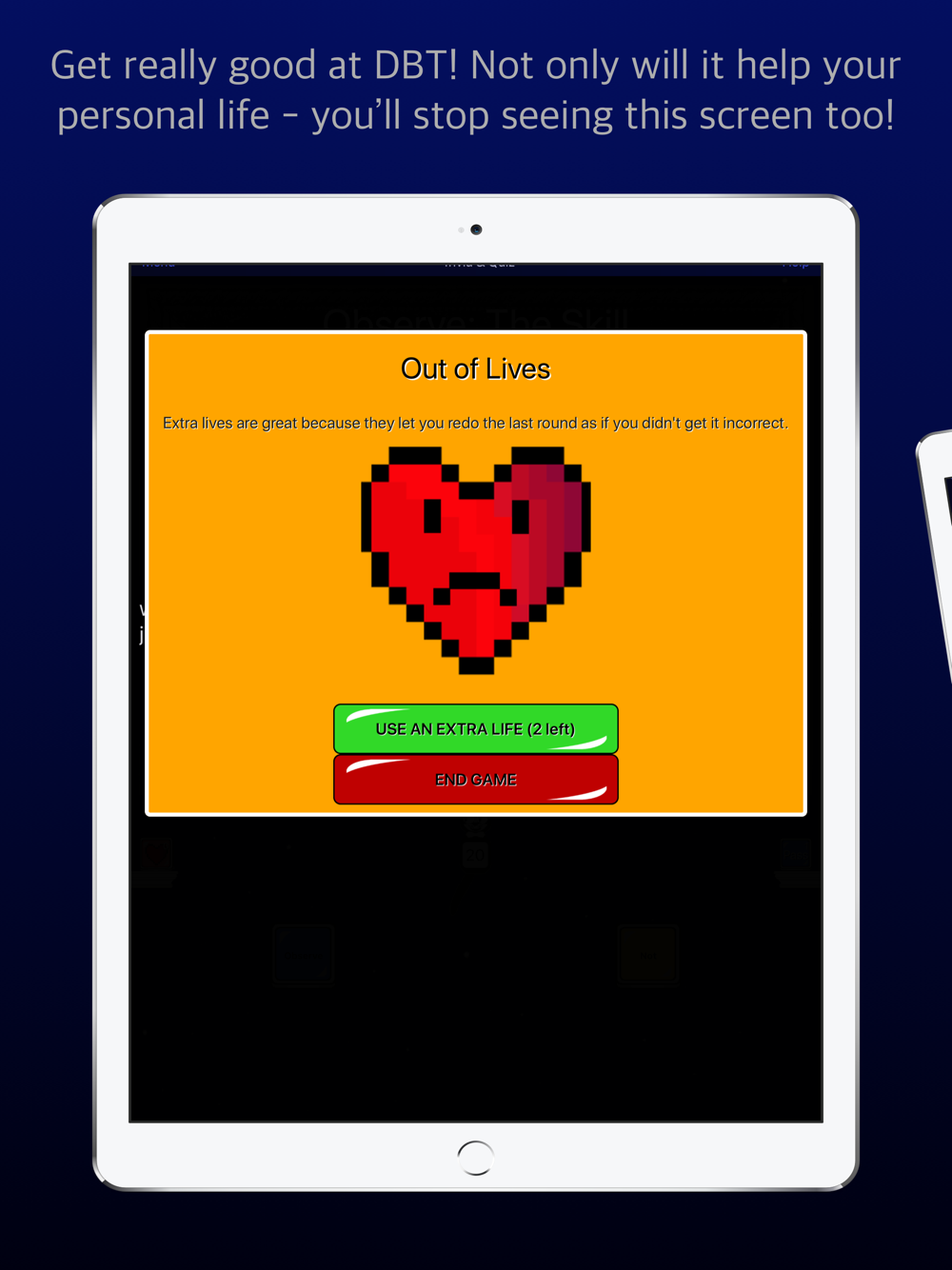 And as usual, this app integrates with our other DBT apps. So the progress you make in this app will count towards your entire DBT progress. Your data will be saved in case you want to share it with your Therapist, or just see your own progress whenever you want.