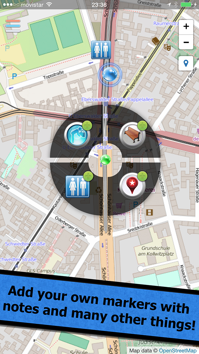 You never know when finding the nearest toilet will become an emergency; in this case you want Toilets Finder at your side! By downloading Toilets Finder now you will be able to locate the nearest toilets, drinking fountains, benches and picnic tables. Toilets Finder is specially indicated for the elder, those with diabetes, constipated, etc...