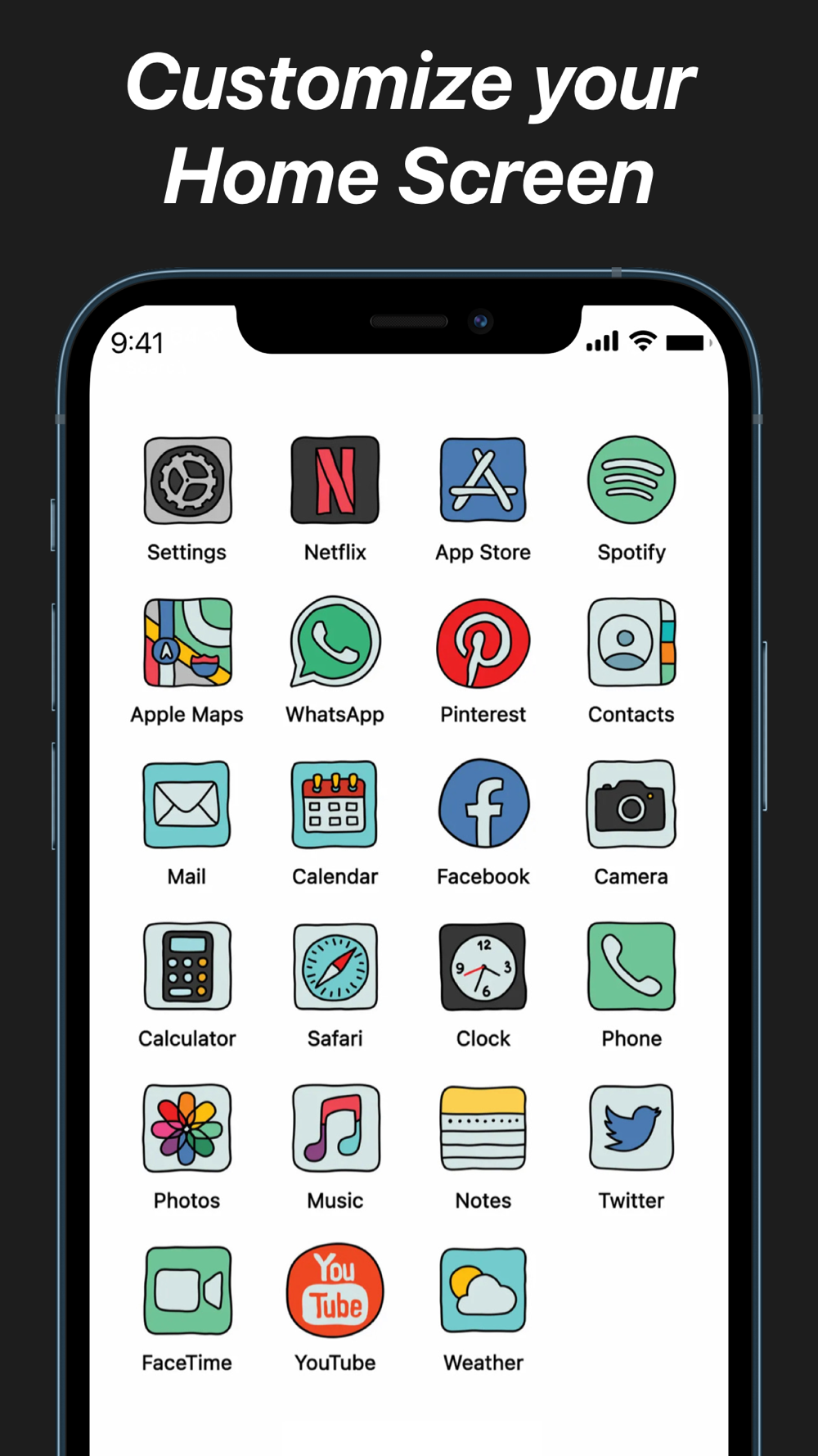 You can create your own themes simply from scratch with popular app icons, get your art skills, and personalize to the highest level.