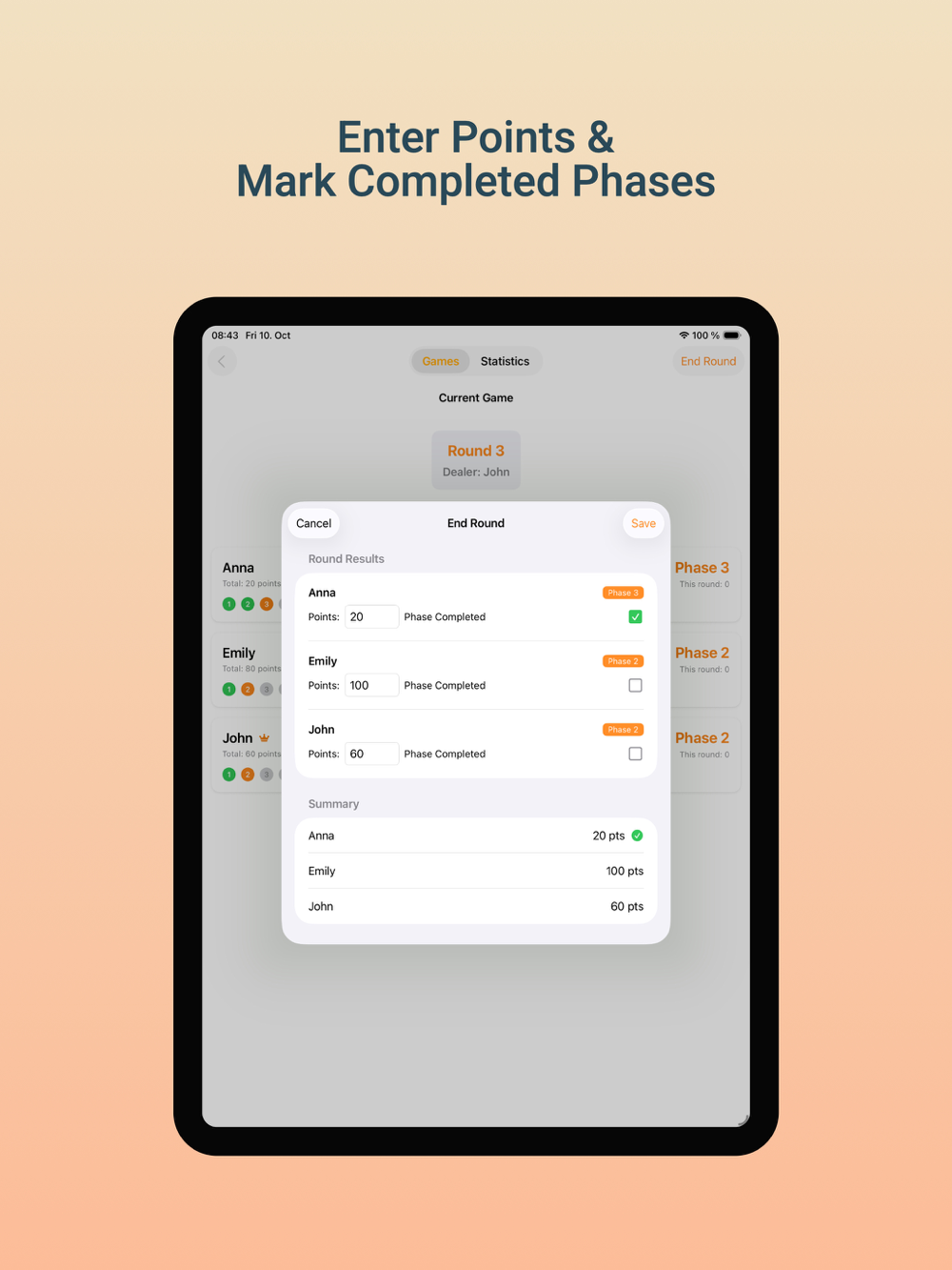 Whether you’re playing with friends, family, or your favorite rivals, Phase 10 Scorer helps you focus on what matters most – having fun together!