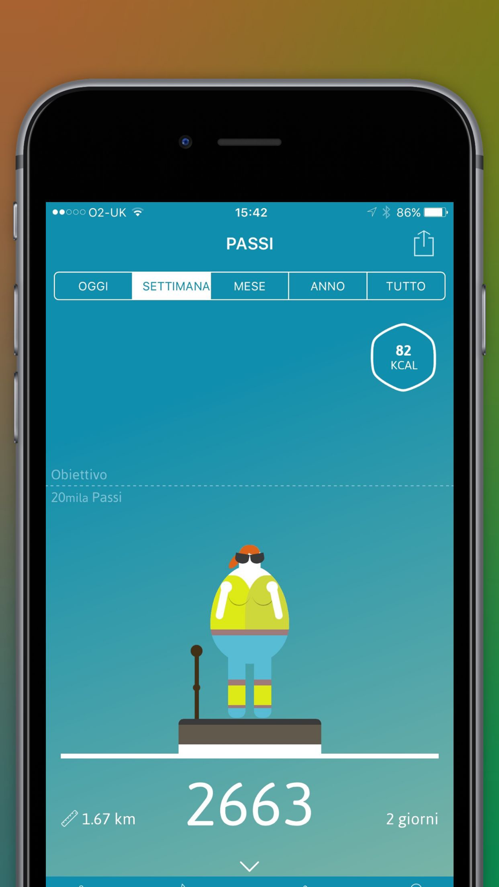 Devi solo portarti il telefono in tasca o in borsa e l'app conterà quanti passi hai percorso, per quanto hai camminato e le calorie che hai bruciato. È sempre accesa, non consuma la batteria e conta quanti passi percorri ogni giorno.