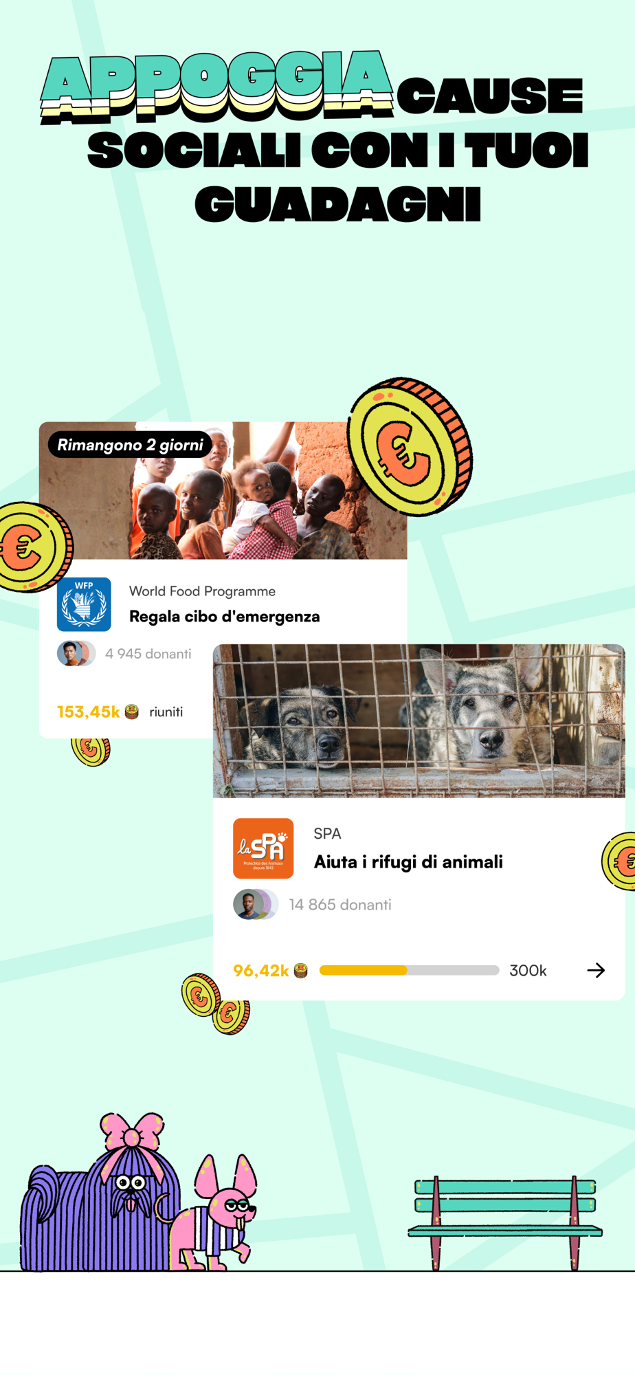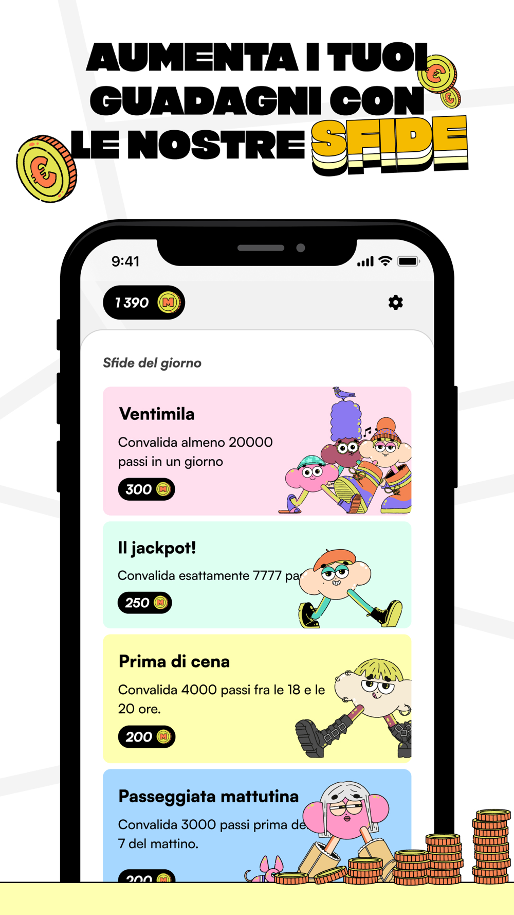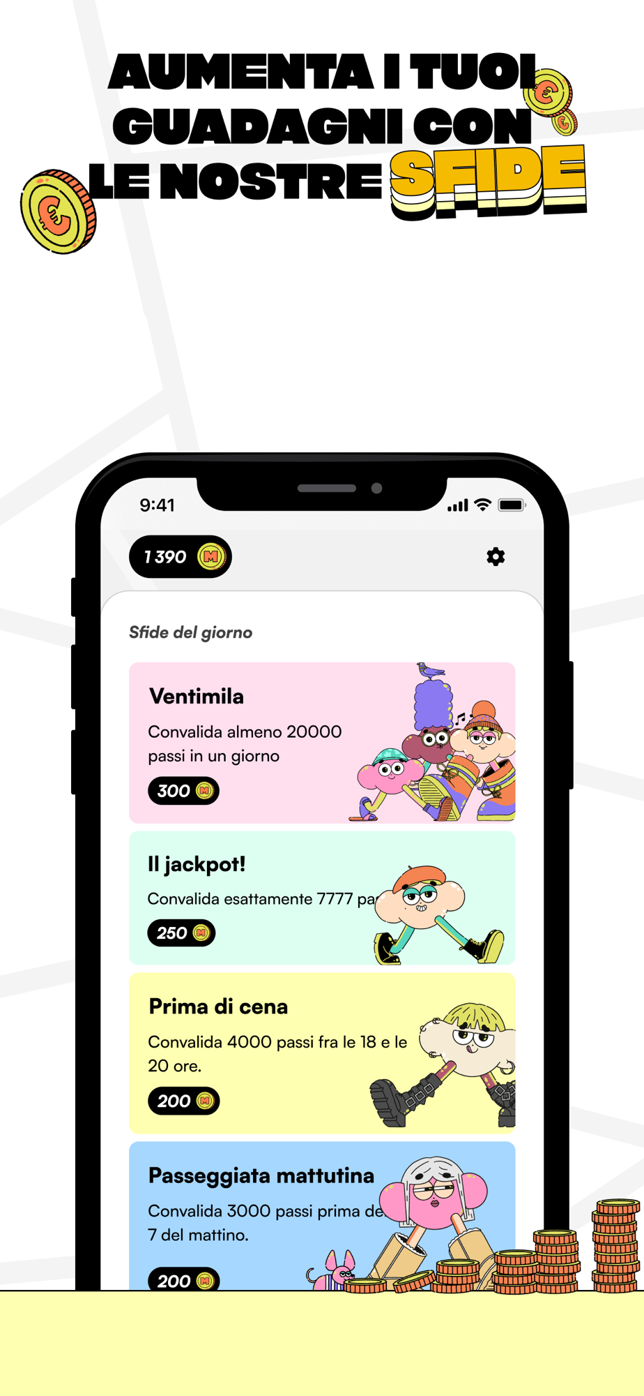Con Macadam dichiarate guerra agli stili di vita sedentari. Stimolando e premiando la vostra attività fisica, vi aiutiamo a rimanere in forma e ad aumentare i vostri guadagni. Che camminiate o facciate uno sprint, l'importante è muoversi e guadagnare!