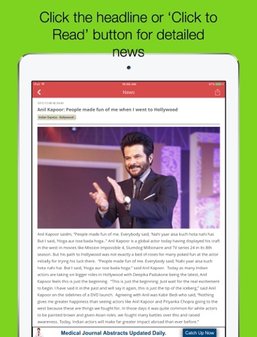 -- Swipe each news article up or down to read the next or previous news item