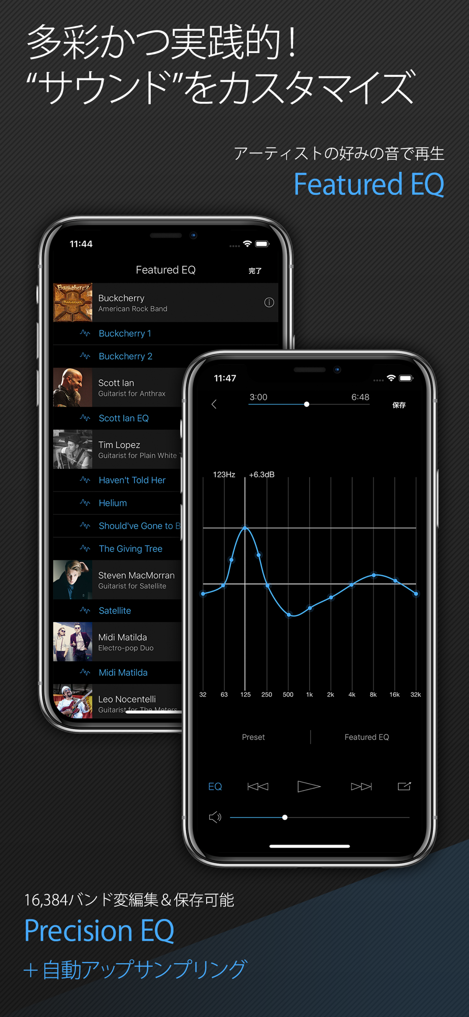 また、ユーザーがカスタマイズしたEQプリセットの名称の保存や、プロのミュージシャンが作成したイコライジングも選択可能です。