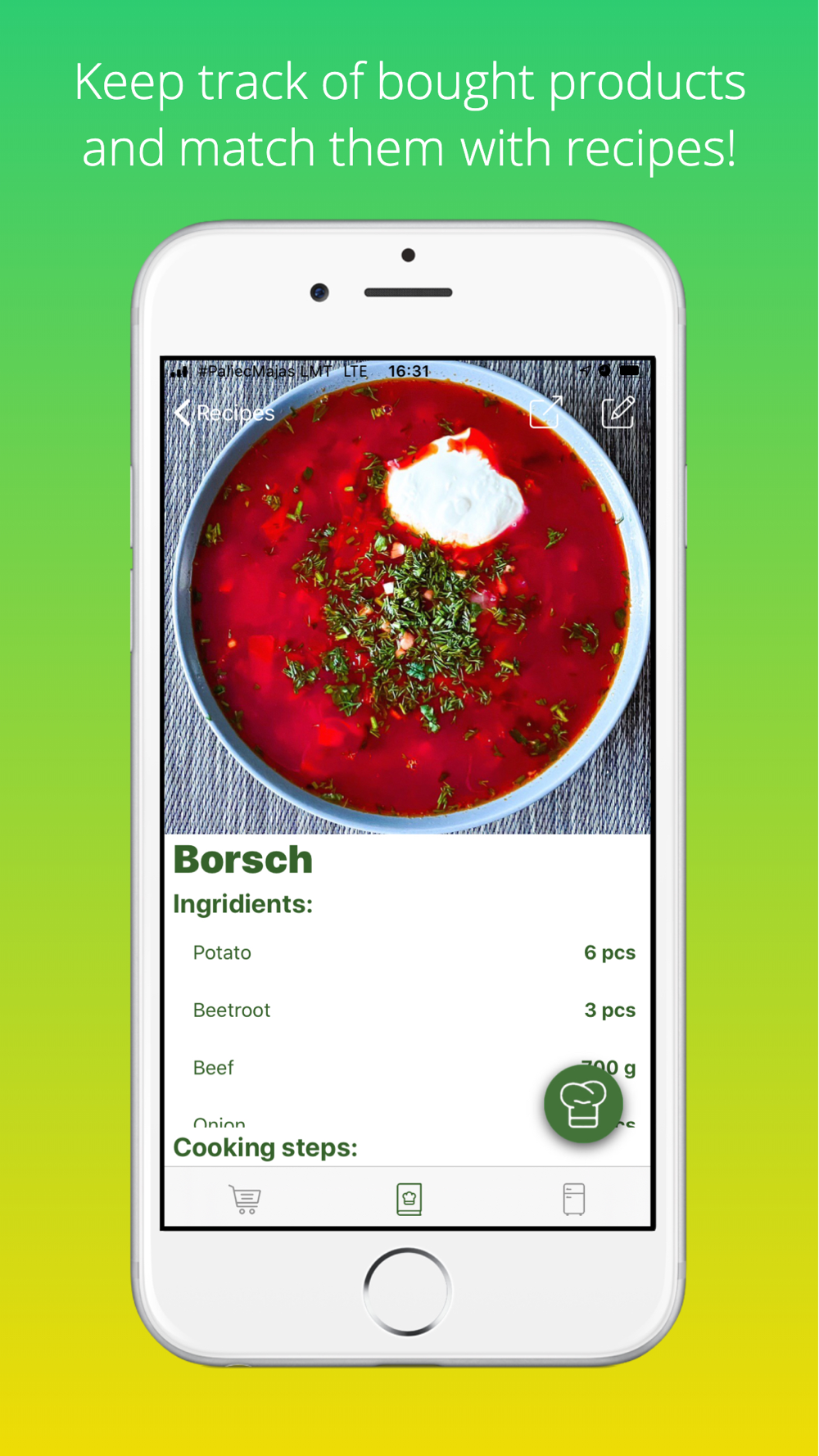 Now you don’t have to remember every product in your fridge or every ingredient you should buy for your meal. Simply open Cookity and the app will do it for you!