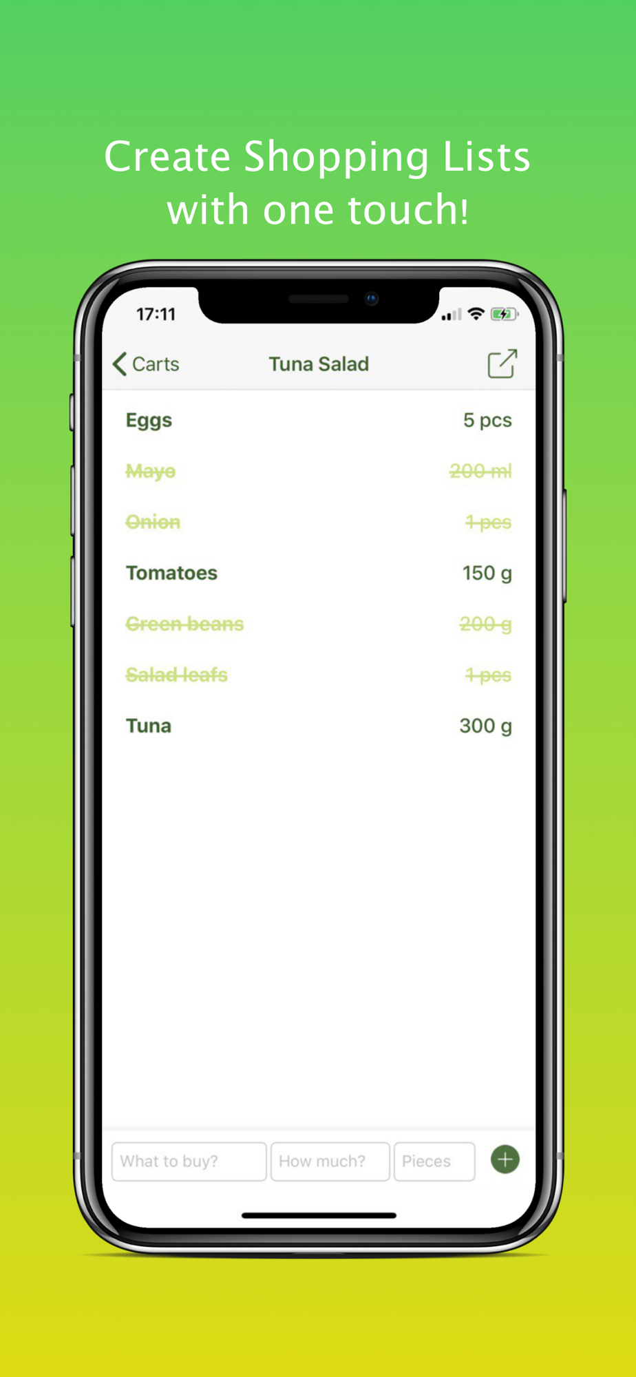 - Create Shopping Lists with one touch