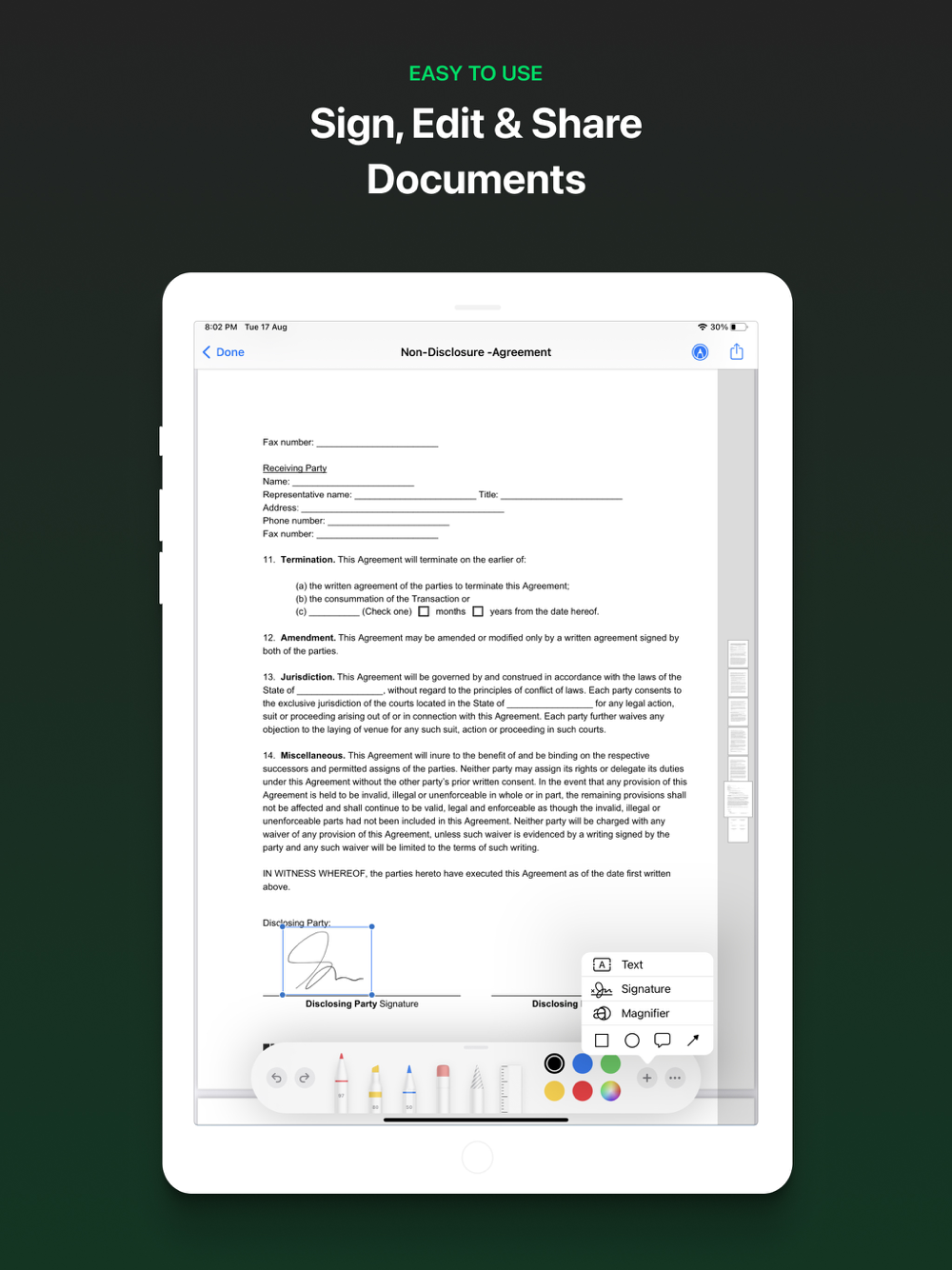 - We do not store any data regarding the uploaded documents or signatures. Everything remains in your Apple ecosystem.