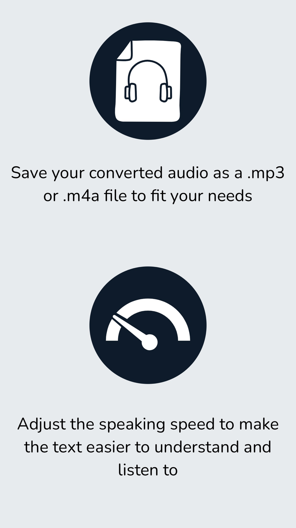 If you typically convert audio in one language, voice type, speed and file format, you can save your personal preferences, so you can quickly enter your text, tap „convert“ and go!