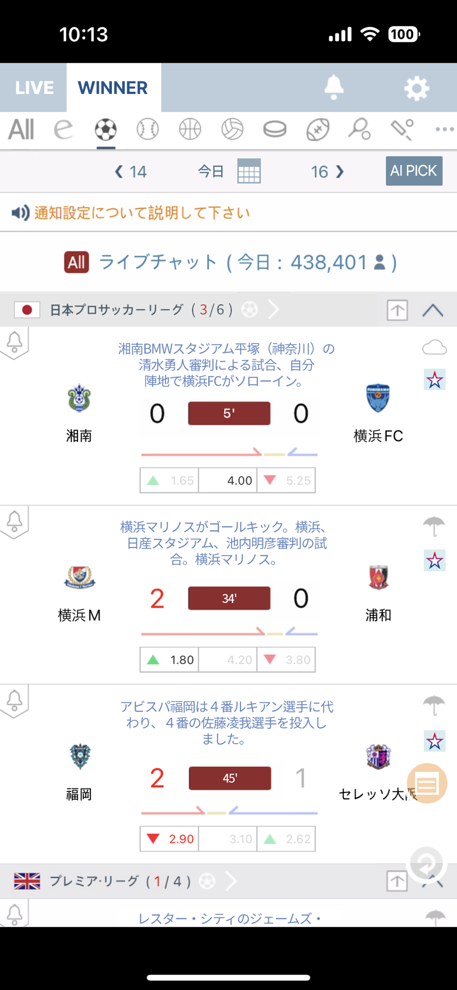 また、関心のある試合を選択すると、この試合の開始、ゴール、終了、取り消しなどの詳細な試合状況お知らせサービスも提供しています。