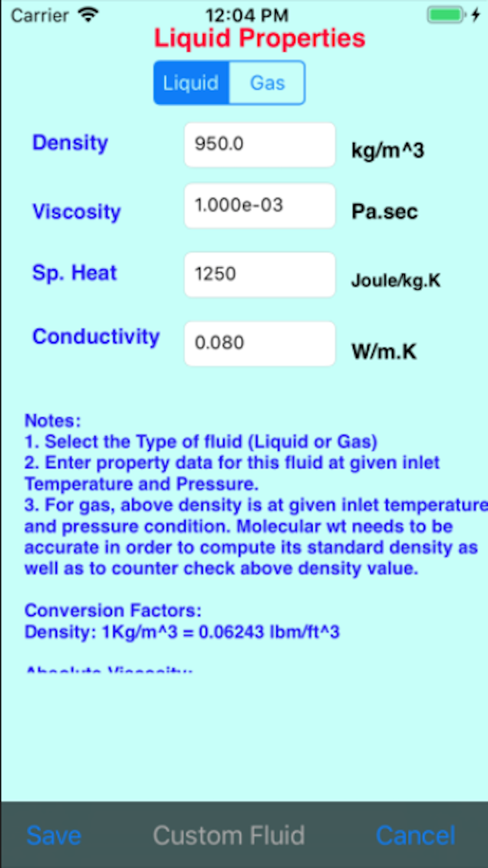 A case study on CO2 flow rate is shown in the screen shot. The result is consistent with other methods used by the industry in computation and difference is less than 0.1%. Fluids that are not in the list, users can create a custom fluid with property data and compute the flow rate using the model provided in this app. Custom fluid data can be saved and reloaded every time when custom fluid is selected.