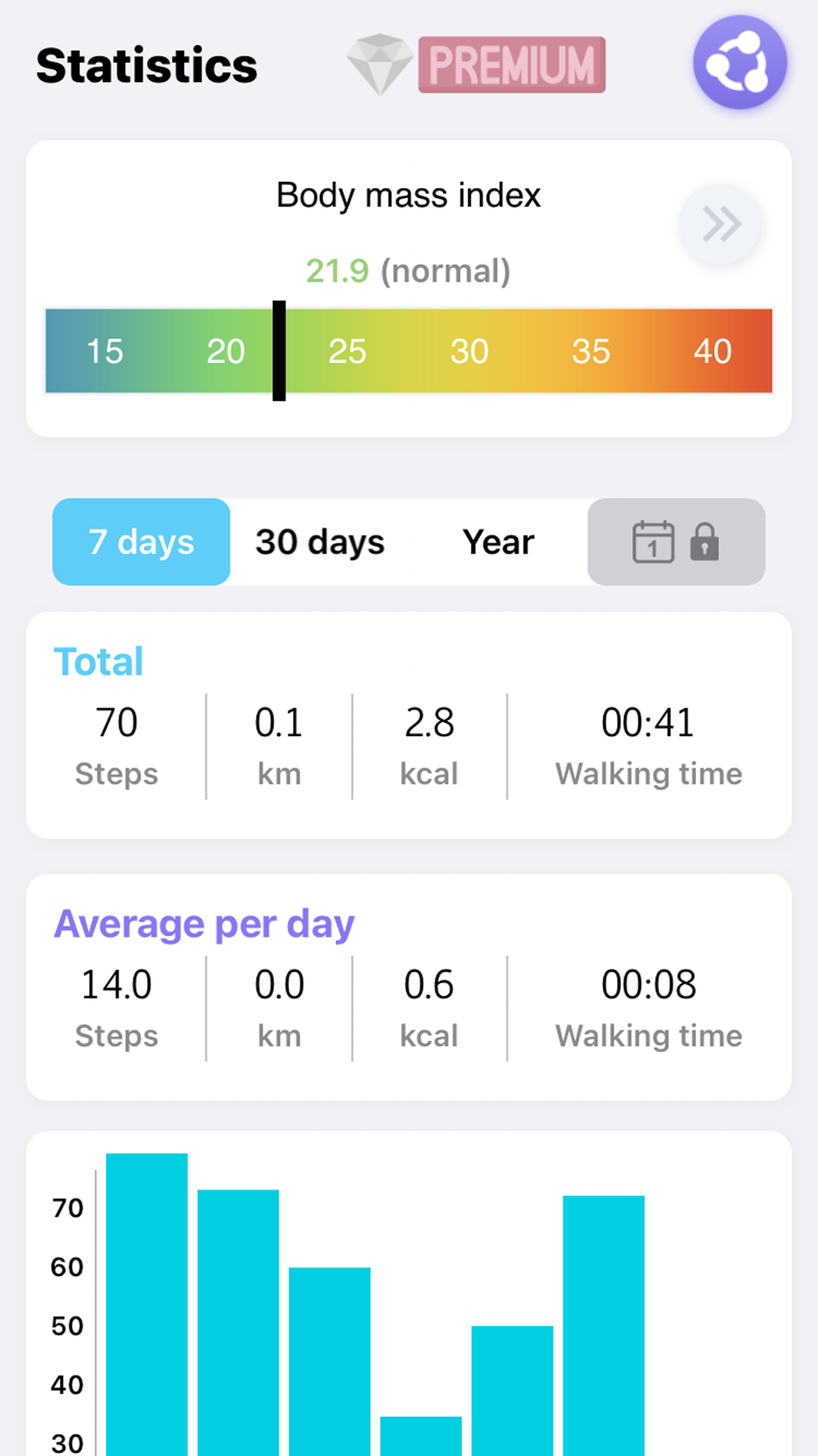 Jeśli chcesz pozostać w dobrej formie, musisz wykonać kilka tych i kroków każdego dnia. Chodzenie jest bardzo korzystne dla zdrowia, ponieważ trenuje serce, pomaga schudnąć, aktywuje różne procesy w organizmie, a evern zastępuje szereg innych ćwiczeń fizycznych. Więc chodźmy, stańmy się szczuplejsi i zdrowsi! Analizuj codzienne raporty, by wiedzieć, ile przeszedłeś i jaki dystans pokonałeś.