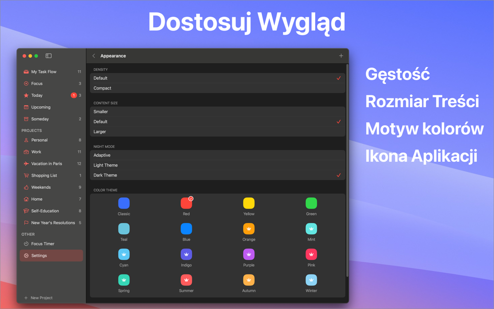 - Łatwy dostęp do zadań dzięki widżetom: Korzystaj ze swoich zadań bezpośrednio z ekranu początkowego iPhone’a i iPada. Przeglądaj i dodawaj zadania wygodnie dzięki naszym intuicyjnym widżetom.
