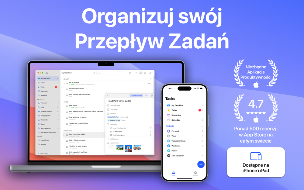 W przeciwieństwie do wielu innych menedżerów zadań dla iPhone’a, iPada i Maca, Task Flow jest aktywnie rozwijany i stale się rozrasta z każdą nową aktualizacją. Więcej informacji znajdziesz na https://taskflowapp.com
