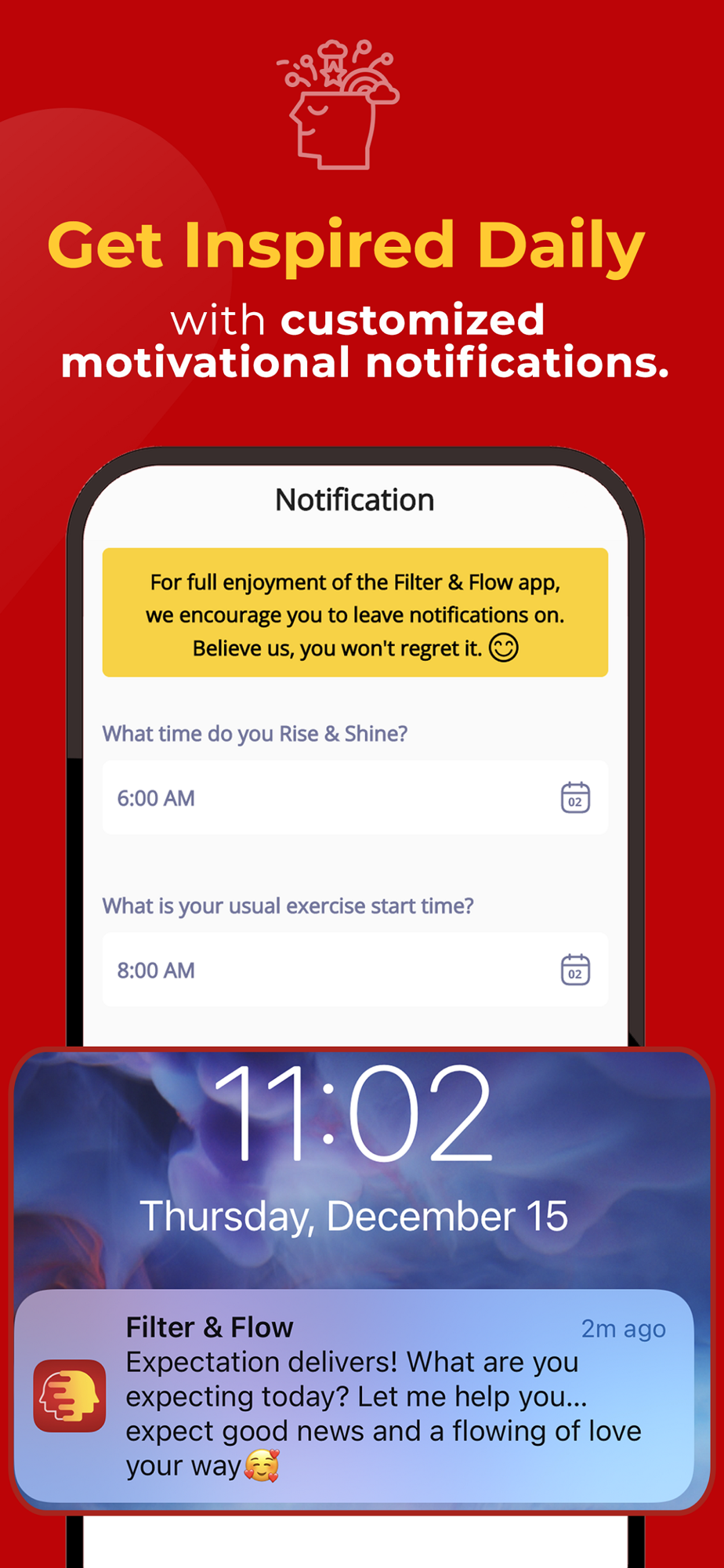 • Receive unique and inspiring notifications to help you conquer your day with ease and intention. We encourage you to allow these notifications as they are one of the keys to staying focused & inspired.