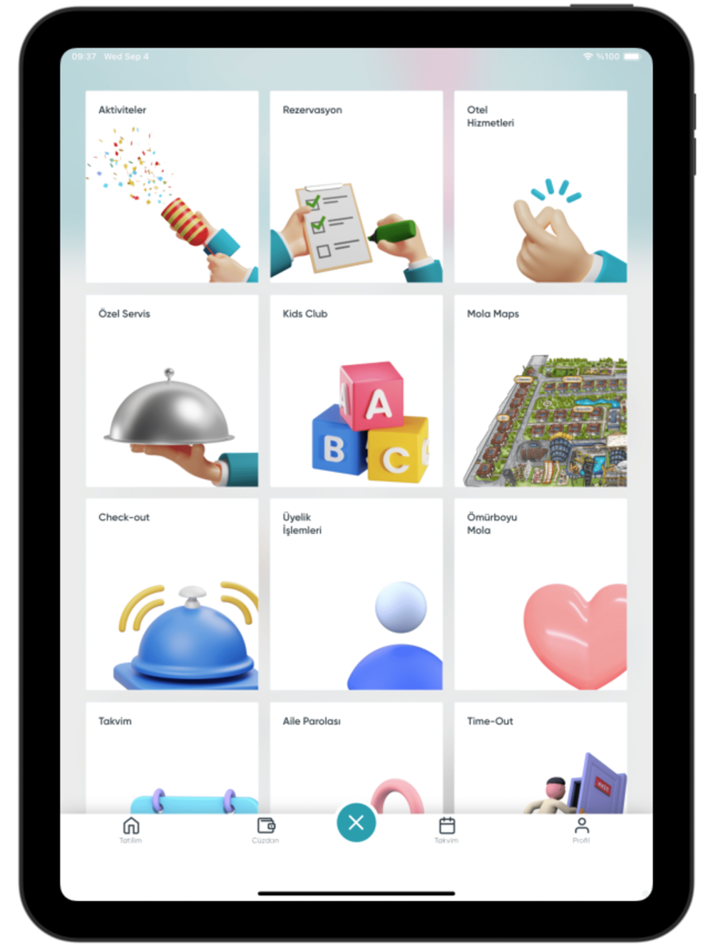 Bu uygulama, konaklamanız esnasında tesislerde bulunan hizmetlere ve etkinliklere hızlı erişim sağlamanızı ve birçok işlemi uygulama üzerinden kolayca yapmanızı sağlar. AES ile konaklamanız boyunca her anı en iyi şekilde değerlendirebilirsiniz.