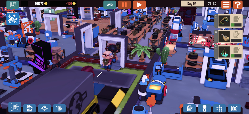 Jesteś poważnym szefem — czas zająć się własną fabryką. Zorganizuj halę produkcyjną, zarządzaj pracownikami, kupuj maszyny i projektuj wydajne linie produkcyjne — wszystko w terminie i ku zadowoleniu klientów!