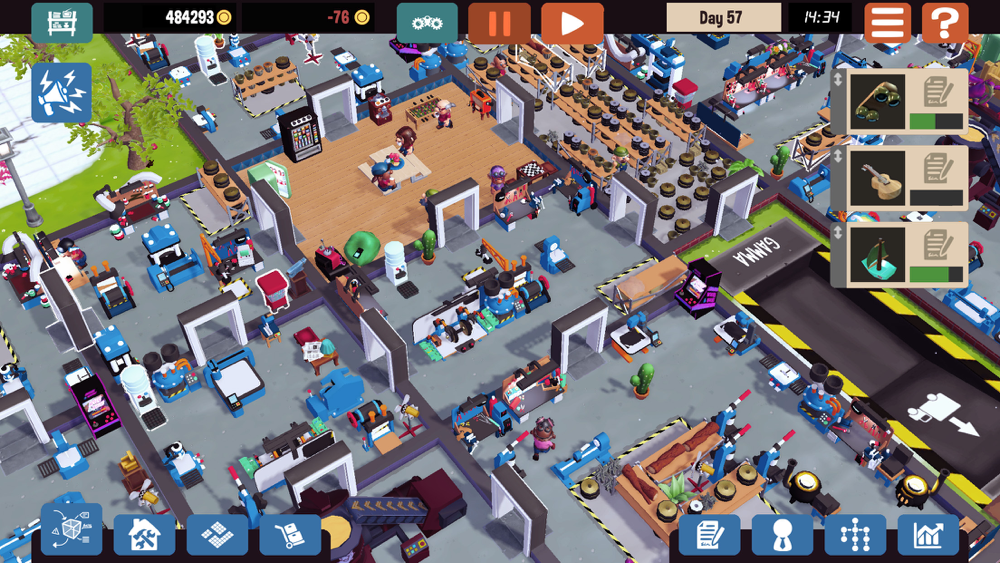 Zacznij od niewielkiego warsztatu i rozwiń go w fabrykę, która zajmie całe twoje biurko! Odblokuj coraz bardziej zaawansowane maszyny, dodaj jeszcze więcej metod produkcji i — przede wszystkim — więcej miejsca. Wkrótce będziesz zarządzać wieloma liniami produkcyjnymi, produkować setki zaawansowanych produktów dziennie i z radością obserwować, jak twoi uroczy pracownicy wykonują powierzone im zadania.