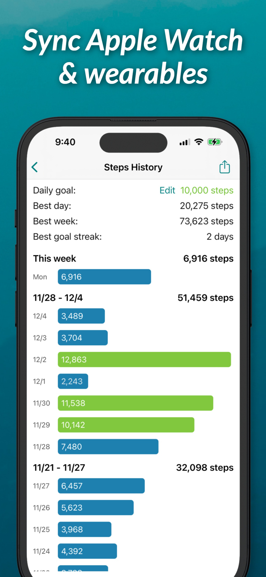 - Sync steps from wearables like Apple Watch, Garmin, Withings, Misfit, Pebble, MoveSpring, Stridekick, Google Fit, Samsung Health etc that work with Apple Health.