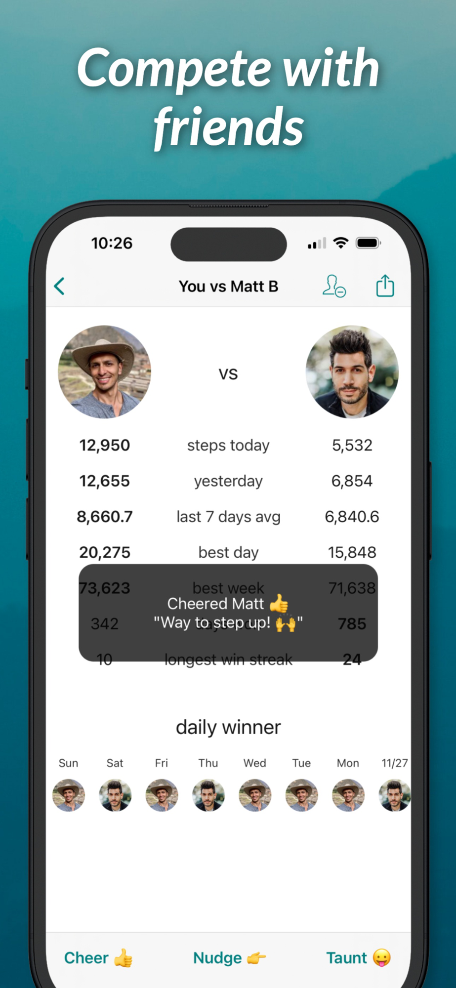 StepUp makes step tracking fun and social - count steps, compete with friends, and be more active together!