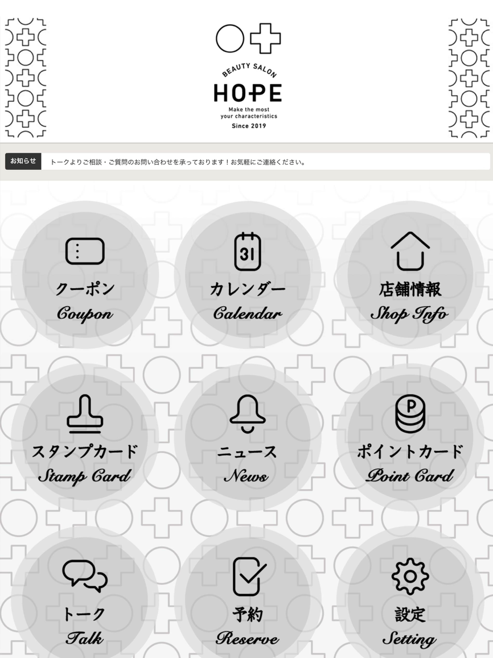 最新のお知らせはもちろん、ご予約状況・限定のお得情報がアプリに届きます。