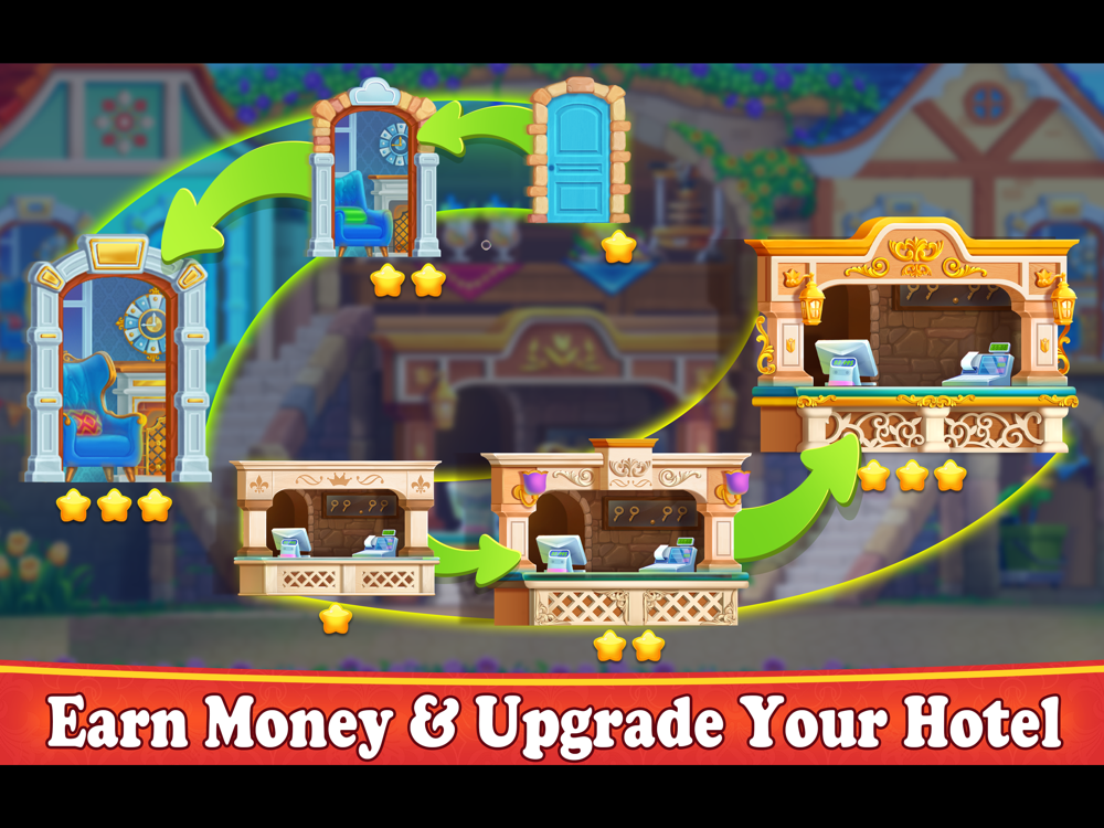 - Colete moedas, joias e gostos para atualizar jogos de história de hotel