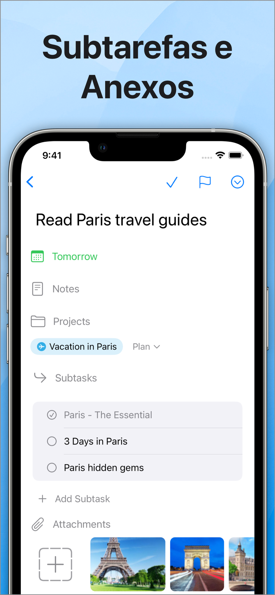 - Widgets — Veja suas tarefas e adicione novas diretamente da tela inicial do seu iPhone e iPad.