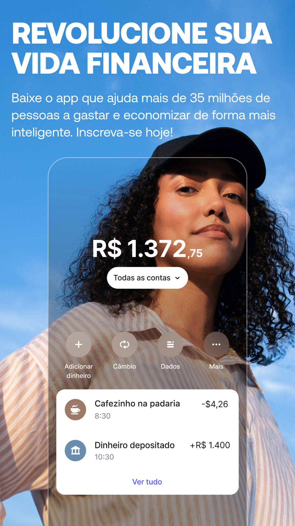 Toda sua vida financeira no exterior em um único app. Gerencie suas metas, faça pagamentos, guarde e envie dinheiro em dólar americano, euro ou em mais de 30 moedas! Use seu cartão gratuito para compras online ou presencialmente, em casa ou no exterior, sem taxas ocultas.