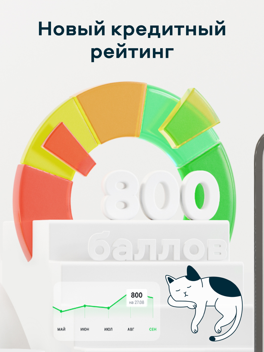 Сервис рассчитывает вероятность получения кредитов онлайн на основе вашей кредитной истории. Возможности сервиса: обновляемый кредитный рейтинг на главном экране приложения, рекомендации по его улучшению, расчёт долговой нагрузки, кредитная история, график изменений рейтинга и уведомления в случае изменений. Проверить кредитный рейтинг можно бесплатно.