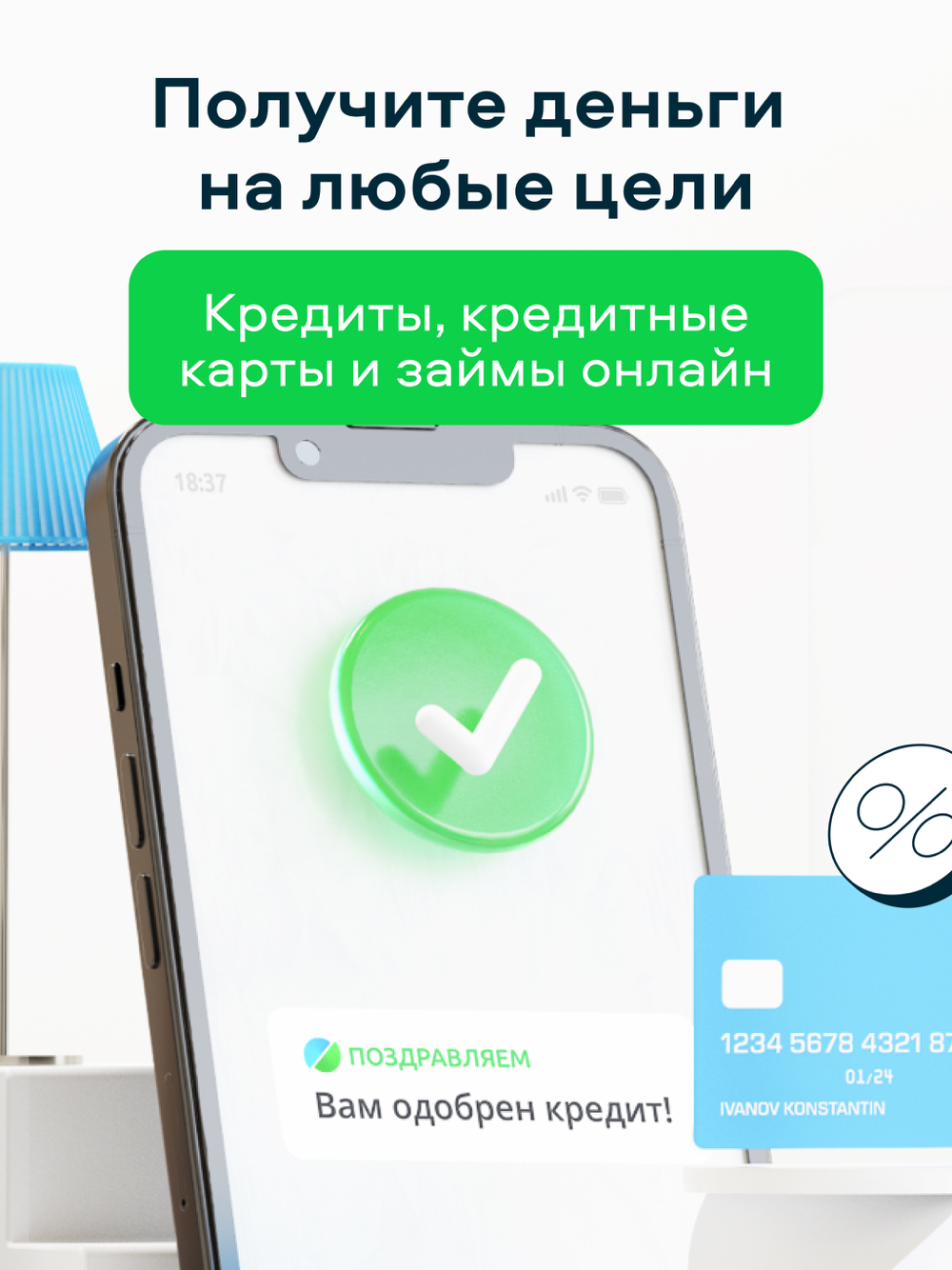 Сервис кредитования, который учитывает вашу кредитную историю и бесплатно подбирает кредиты наличными с высокой вероятностью одобрения среди 20 банков, а также экспресс микрозаймы без процентов. Он позволяет отправить заявку, рассчитать условия, получить одобрение за пару минут и оформить кредит онлайн.
