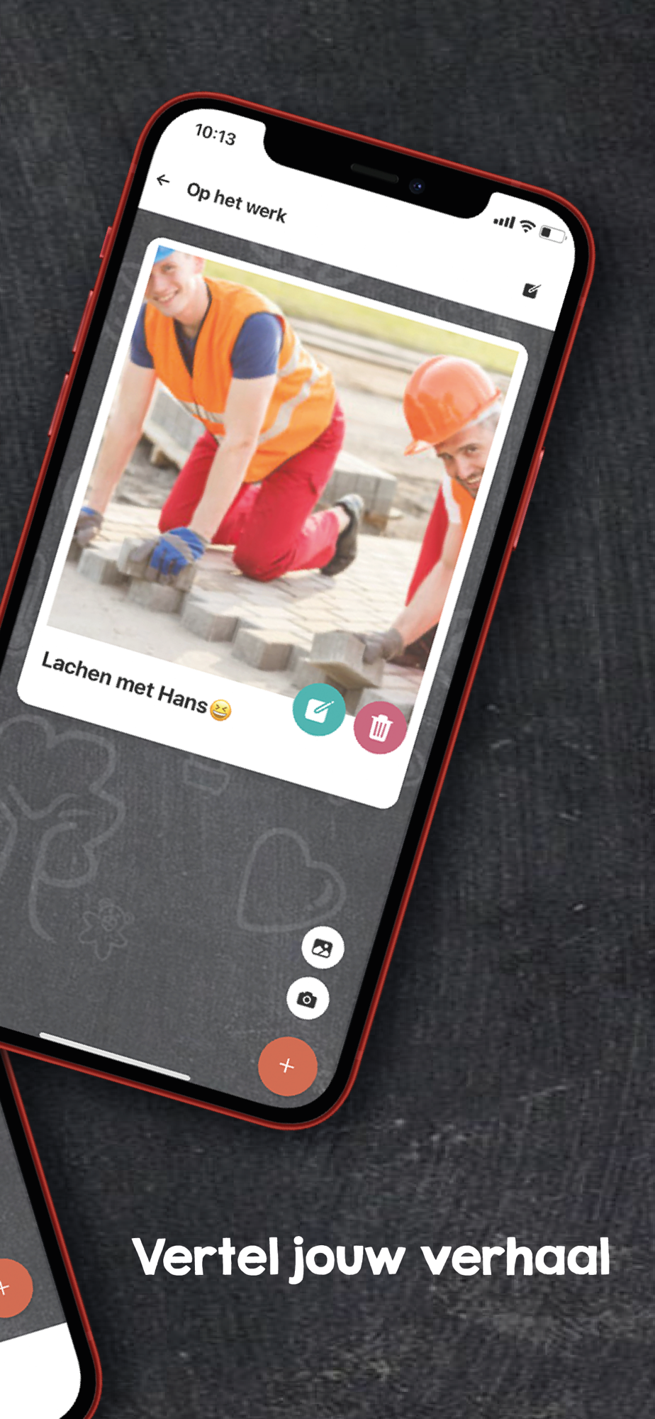 Je kiest de beelden die best bij jou passen. En je plaatst ze per thema. De thema’s kan je zelf kiezen. Je kan de beeldenbank aanvullen met persoonlijk beeldmateriaal. De app beschermt wat privé is: alle informatie komt op jouw telefoon of tablet en jij toont wat je wil laten zien.