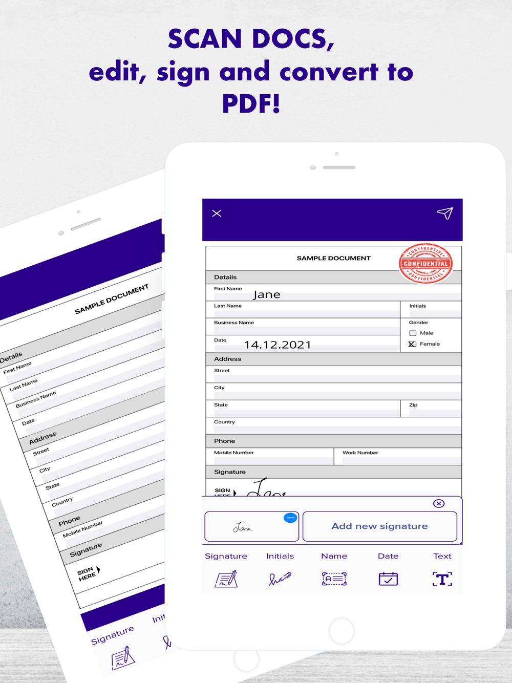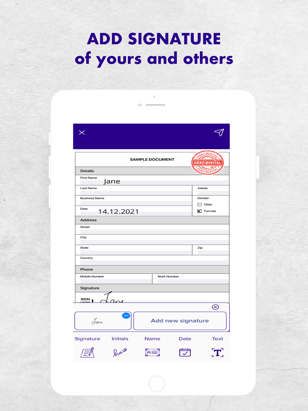 - Create your digital signature and add your signature easily to PDF documents or photos.