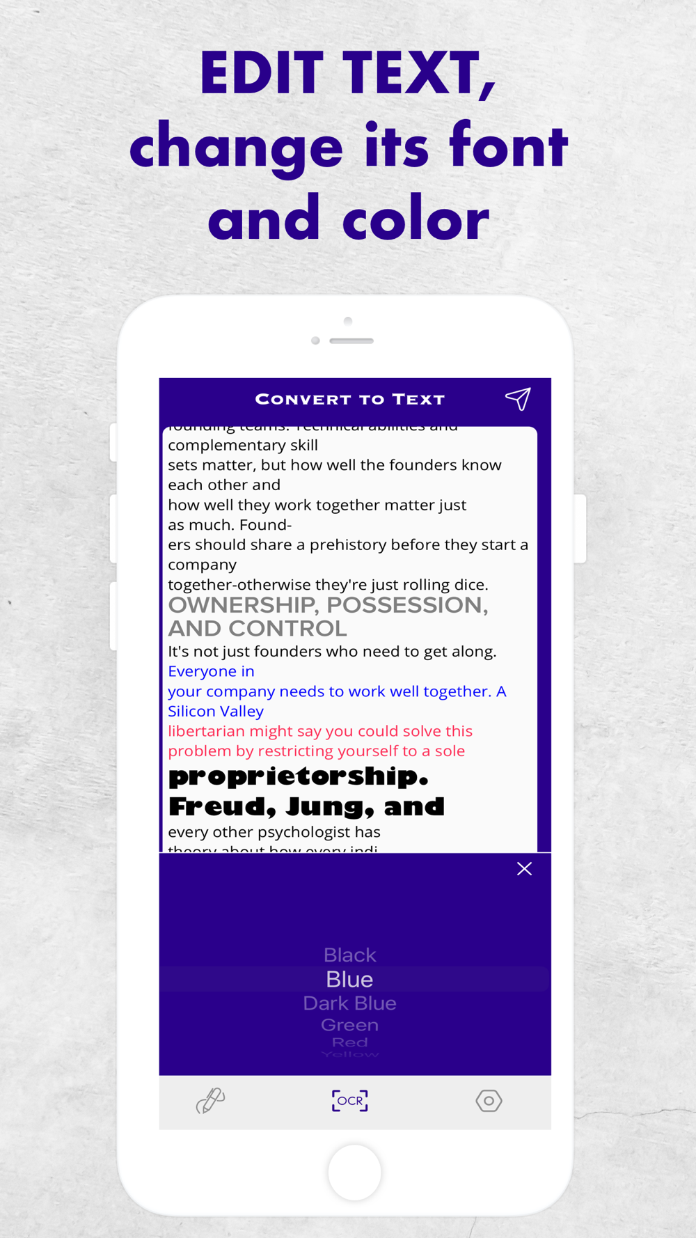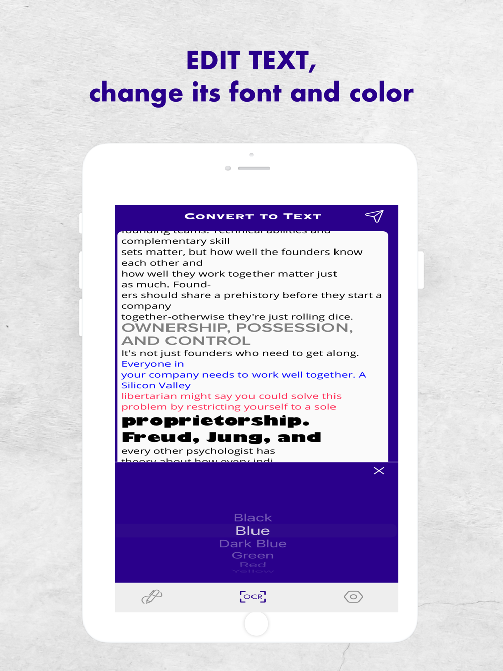 - You can select any text range of converted text, copy it, change its color, its font and paragraph style.
